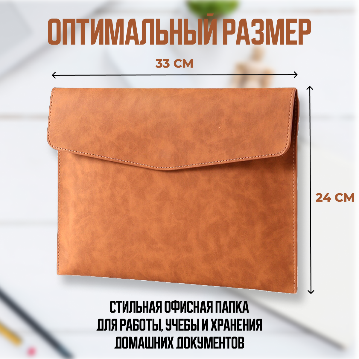 Купить Папка для документов А4 из экокожи, на магнитной кнопке, коричневая