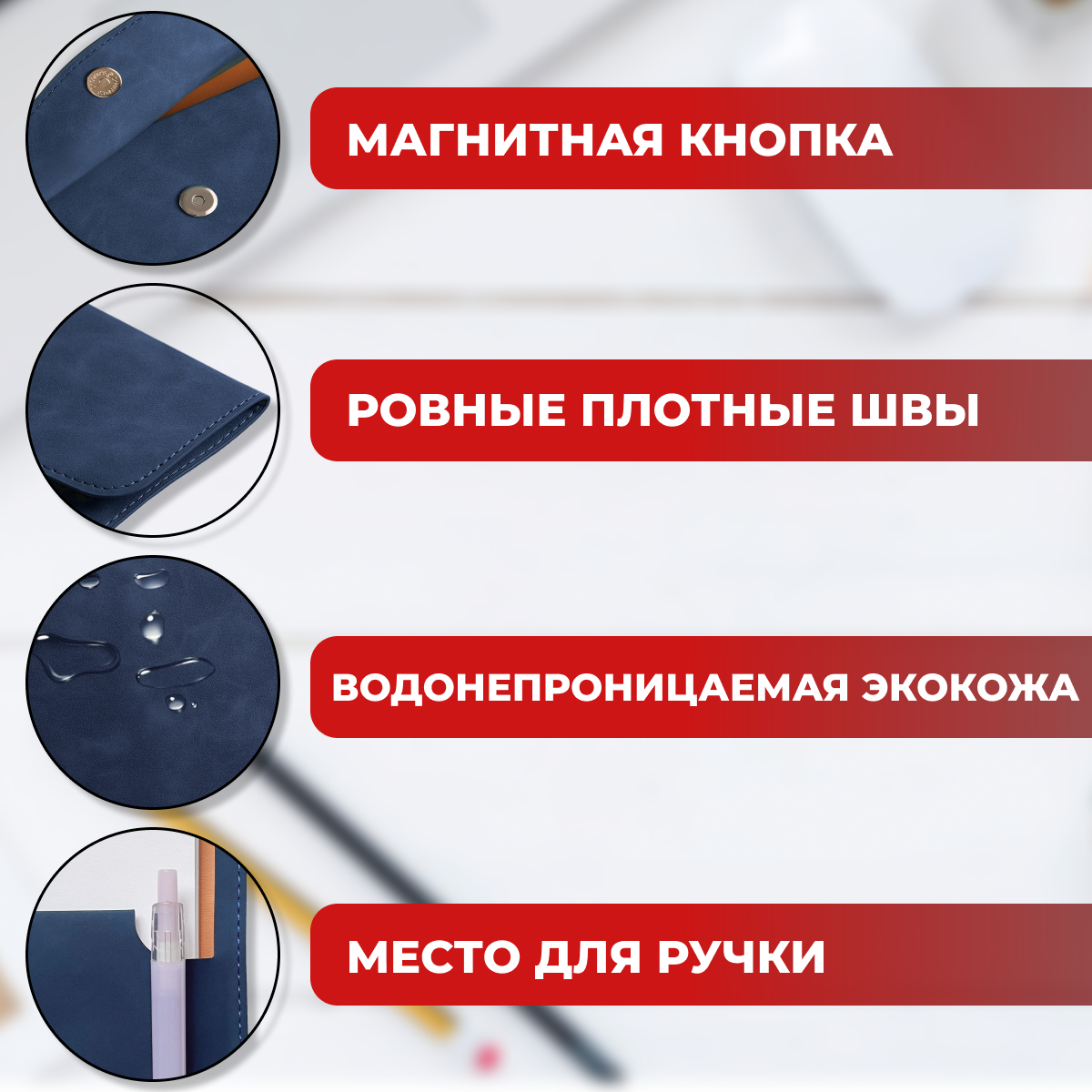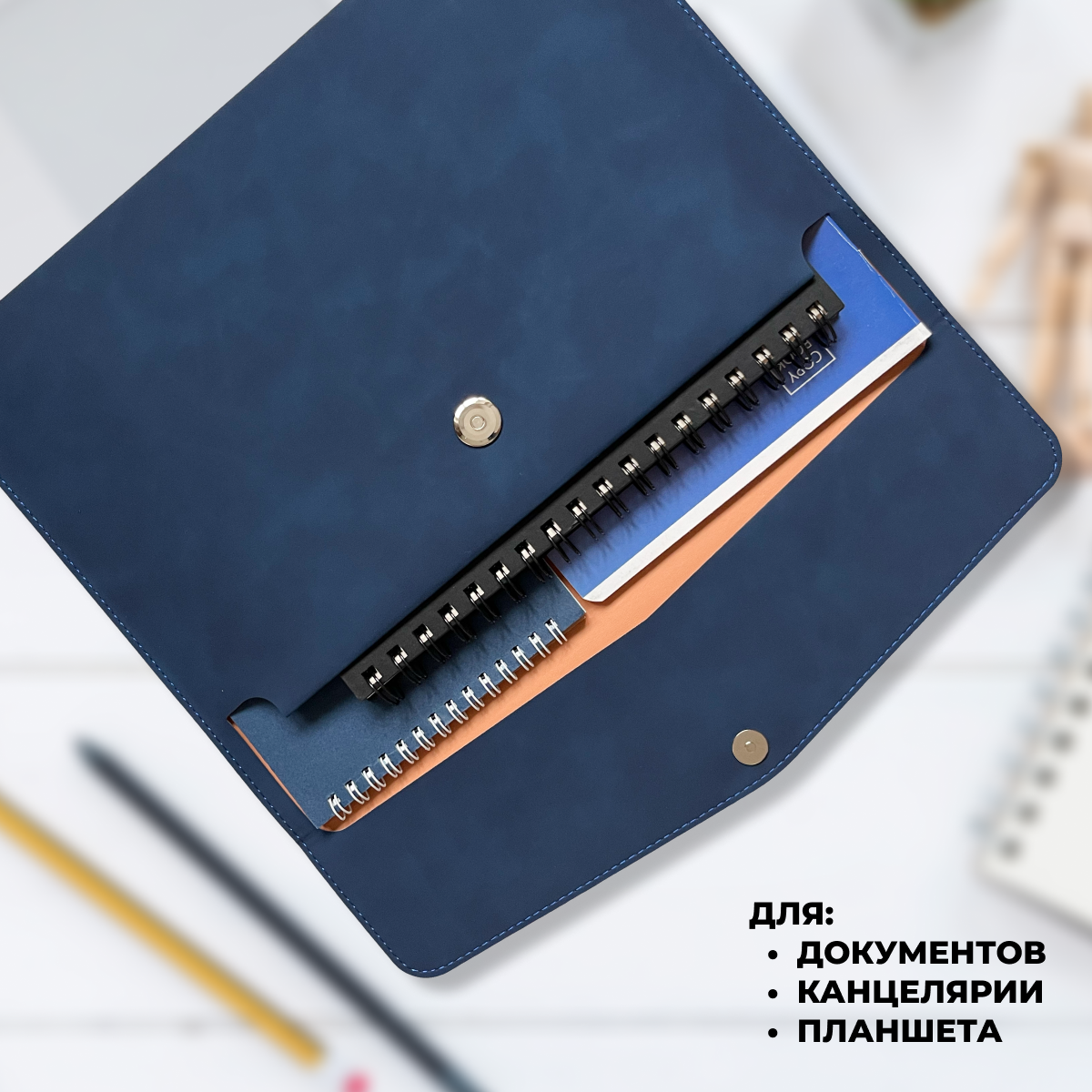 СохранитьПапка-органайзер, на магнитной кнопке, для документов, А4, из экокожи, синяя интересное: