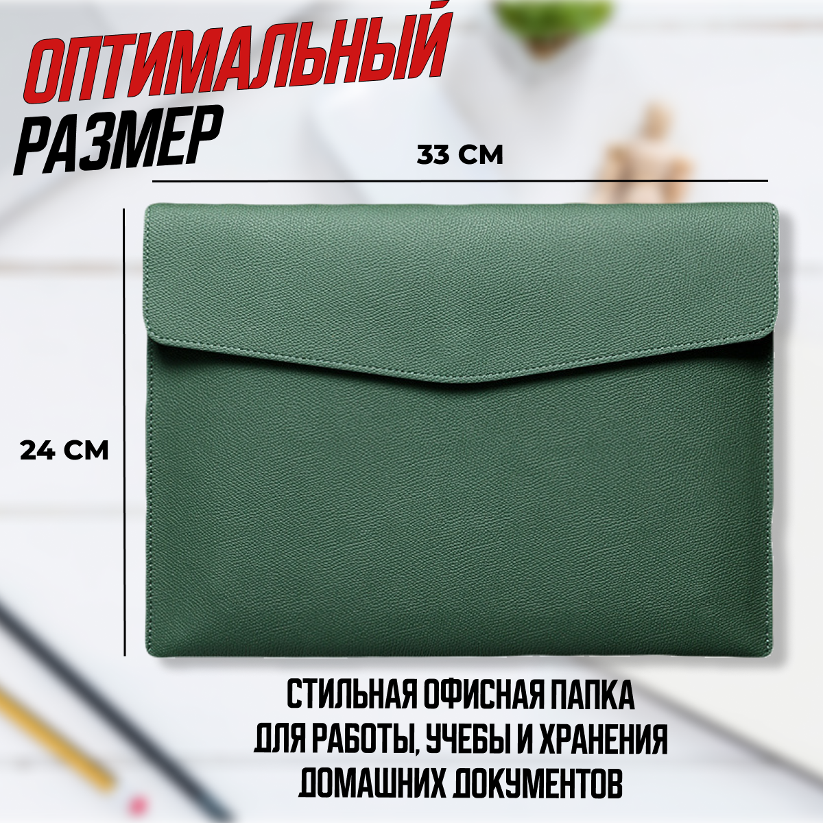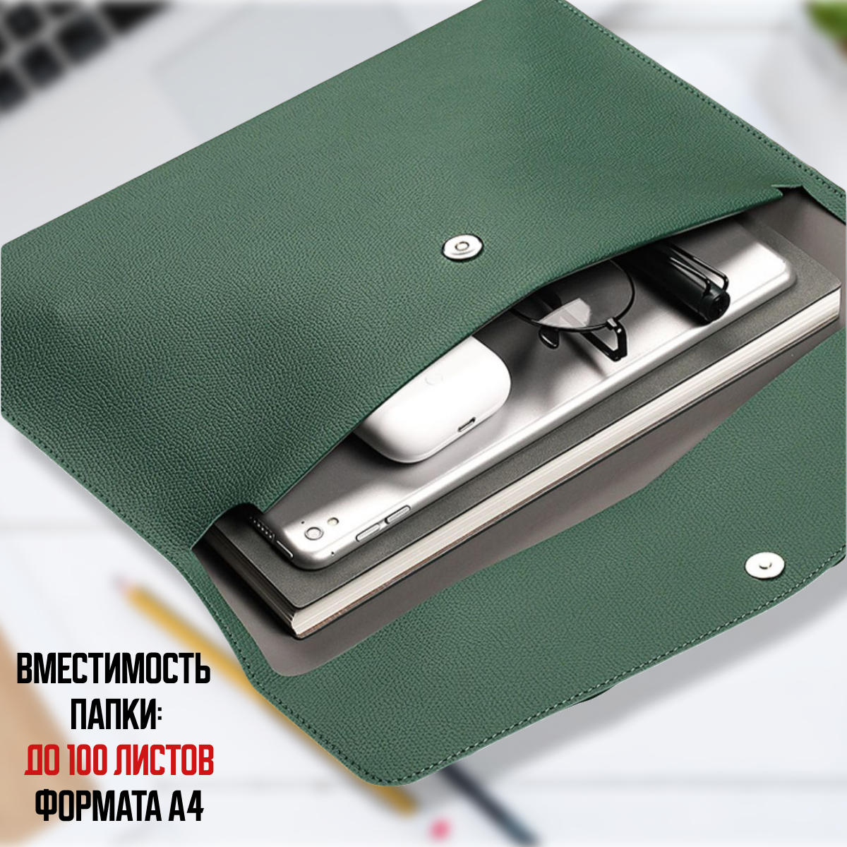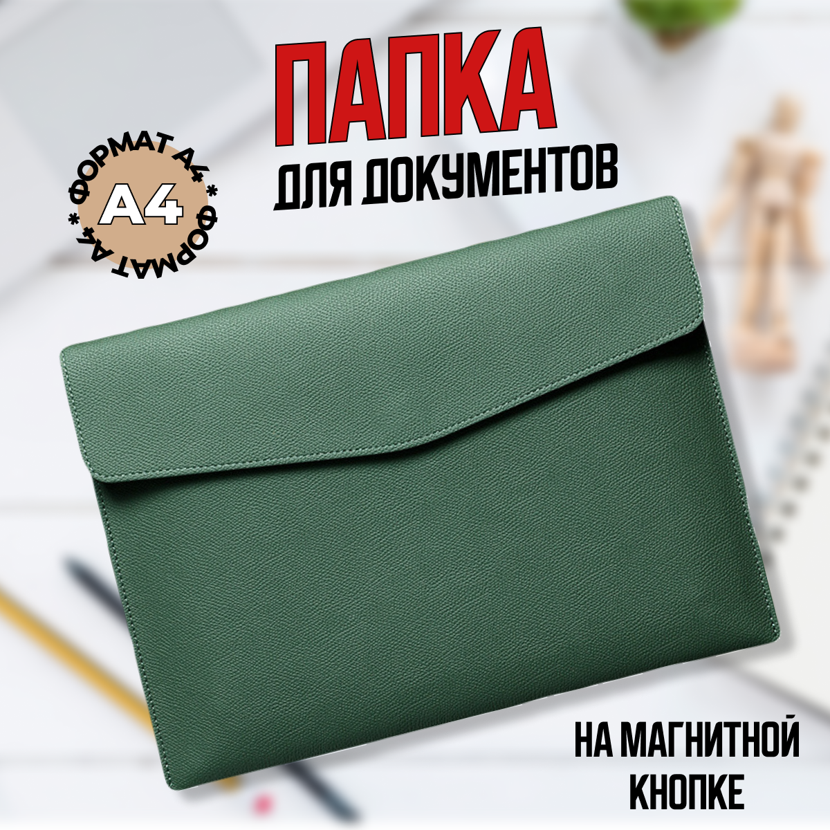 Купить Папка для документов А4 из экокожи, на магнитной кнопке, зеленая