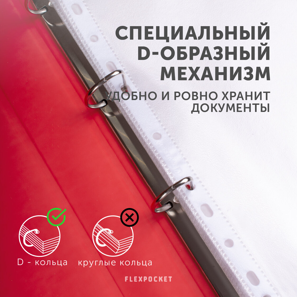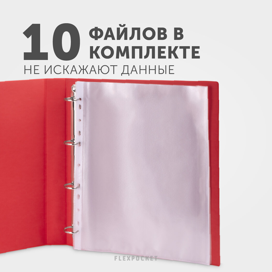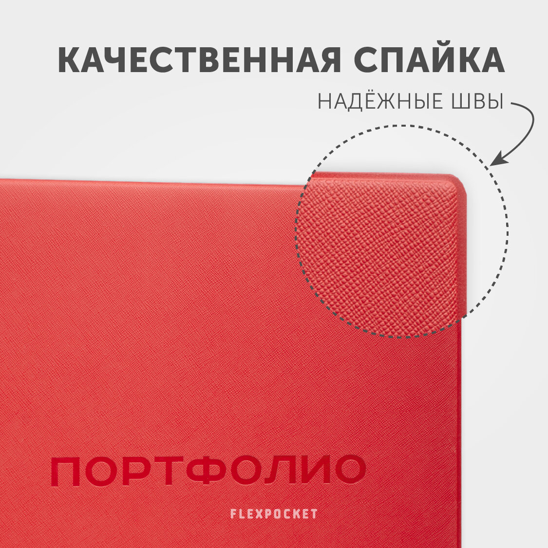 Папка-портфолио для школьника из экокожи на кольцах с набором файлов Flexpocket, цвет красный интересное: