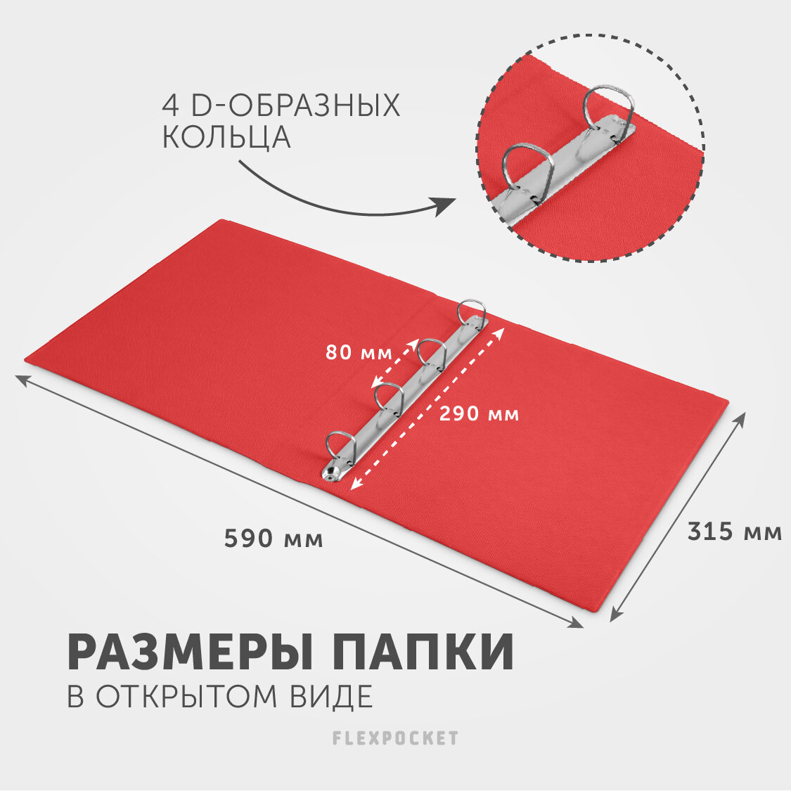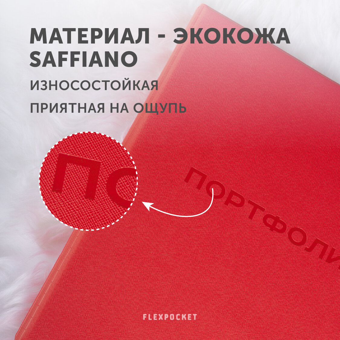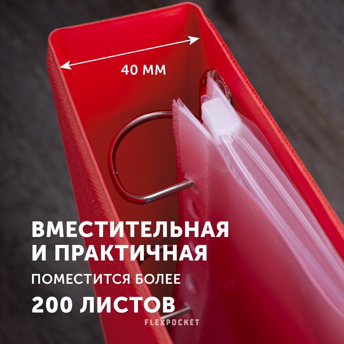 Папка-портфолио для школьника из экокожи на кольцах с набором файлов Flexpocket, цвет красный интересное: