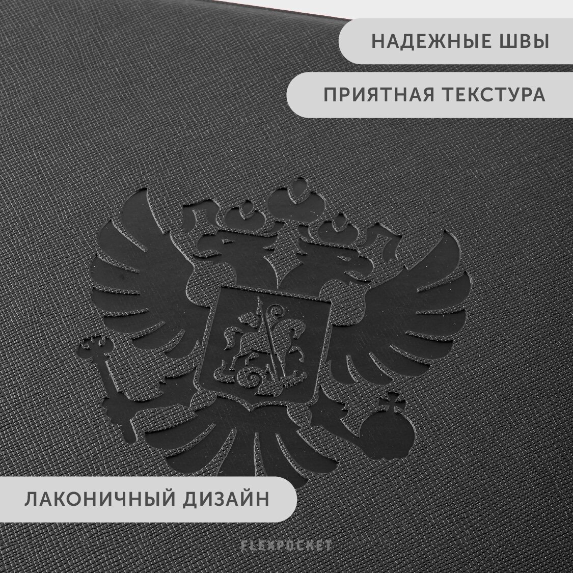 Папка для документов / папка-уголок из экокожи Saffiano, формат А4, с разделителем, цвет Черный с гербом интересное: