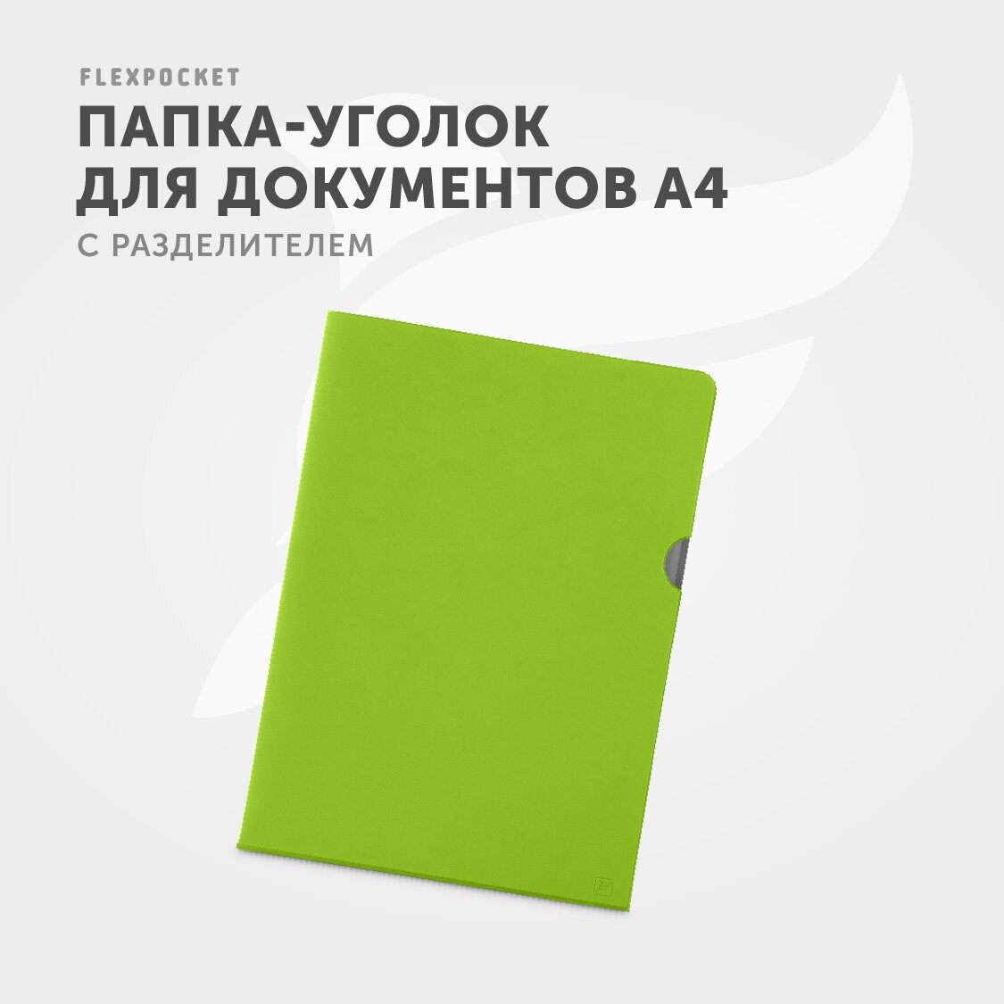 Купить Папка-уголок из экокожи с разделителем для документов Flexpocket, формат А4, цвет зеленый