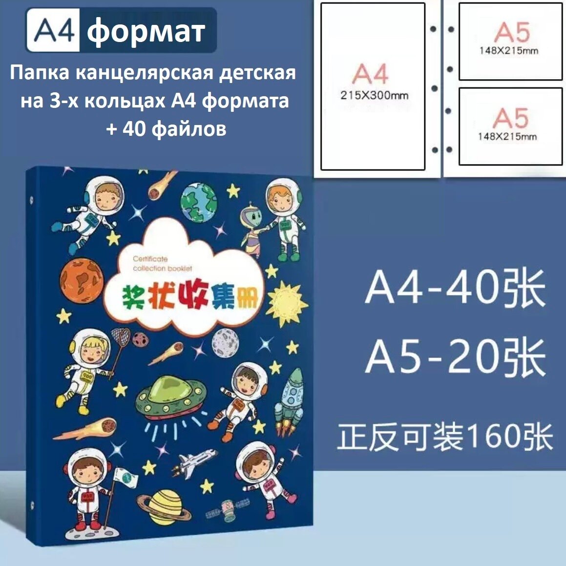 Папка канцелярская детская на 3-х кольцах А4 формат + 40 файлов интересное: