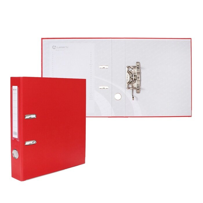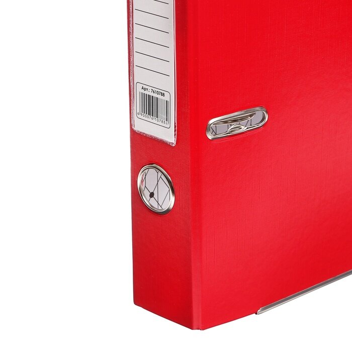 Купить Папка-регистратор А4, 50 мм, Calligrata, ПВХ, тиснение "лен", металлическая окантовка, карман на корешок, собранная, красная, микс