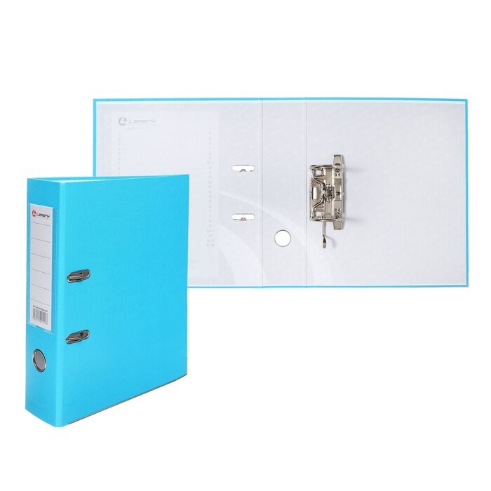 Купить Папка-регистратор А4, 75 мм, Calligrata, ПВХ, тиснение "лен", металлическая окантовка, карман на корешок, собранная, голубая, микс