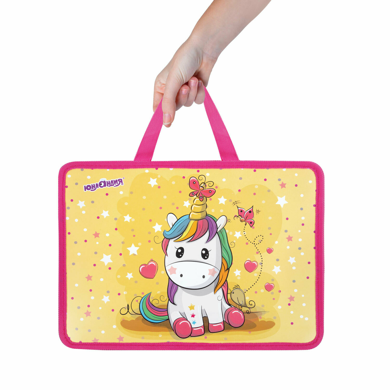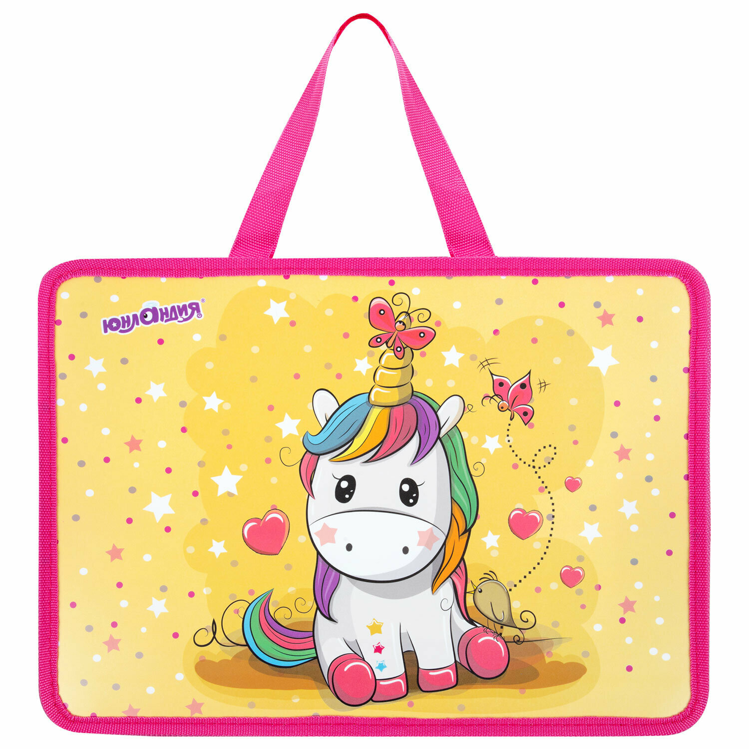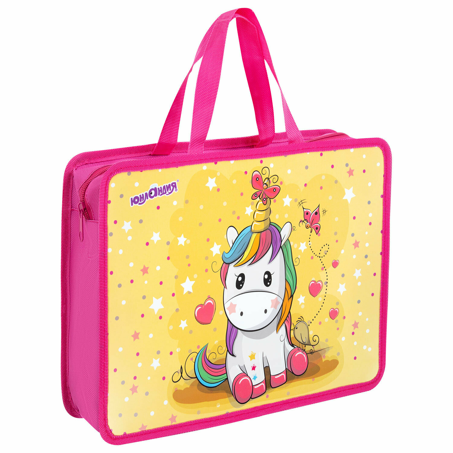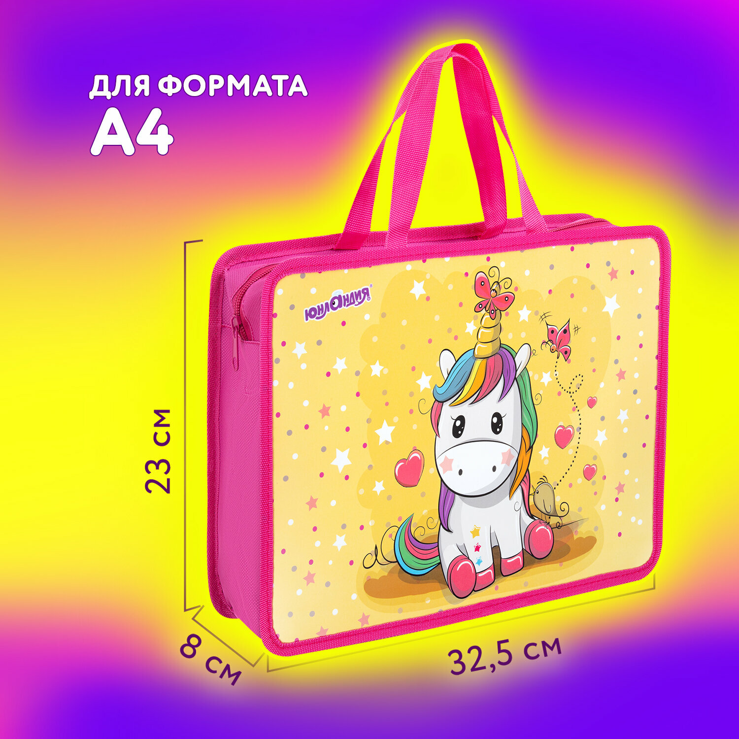 Папка для тетрадей, труда, рисования и изо А4 для девочек на молнии, канцелярия для школы, органайзер 1 отделение откидная планка, Юнландия, 273392