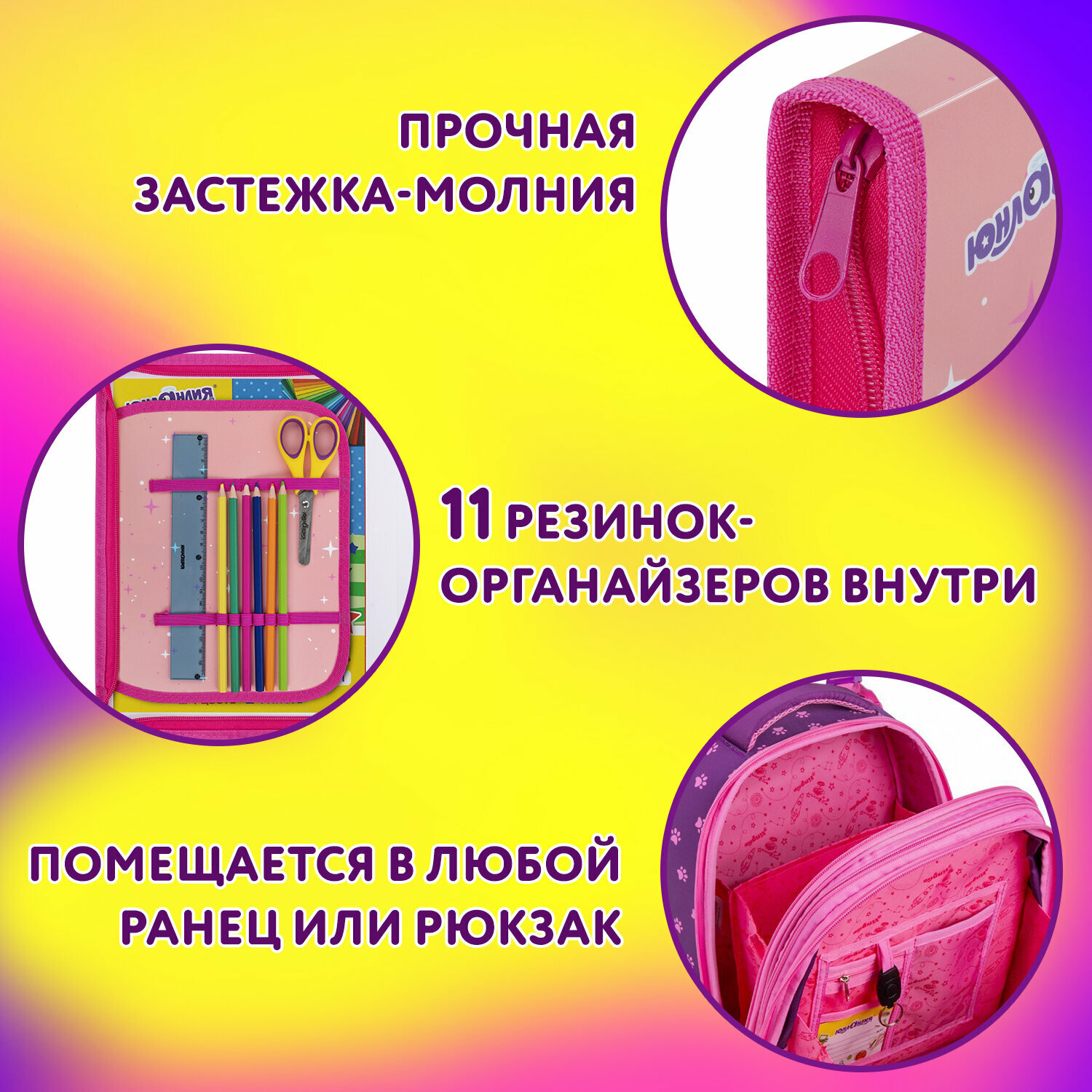 Папка для тетрадей, труда, рисования и изо А4 для девочек на молнии, канцелярия для школы, органайзер 1 отделение откидная планка, Юнландия, 273392