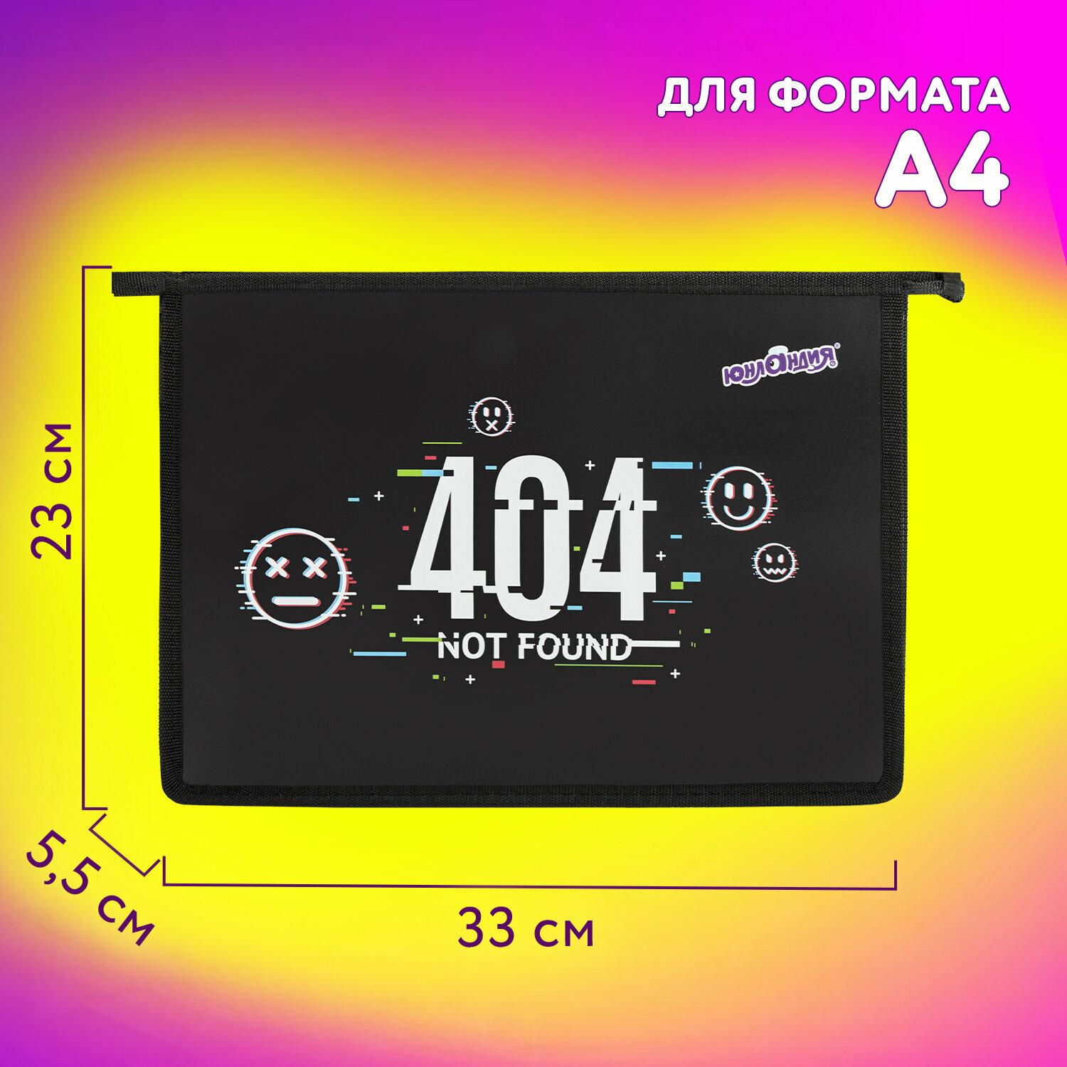 Купить Папка для тетрадей Юнландия А4, 1 отделение, пластик, на молнии, "Not found", 272143