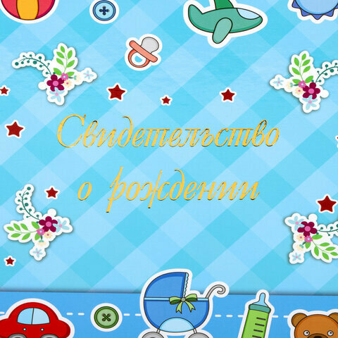 Купить Папка адресная ламинированная "свидетельство О рождении", А4, для мальчика, STAFF "Profit", 129588