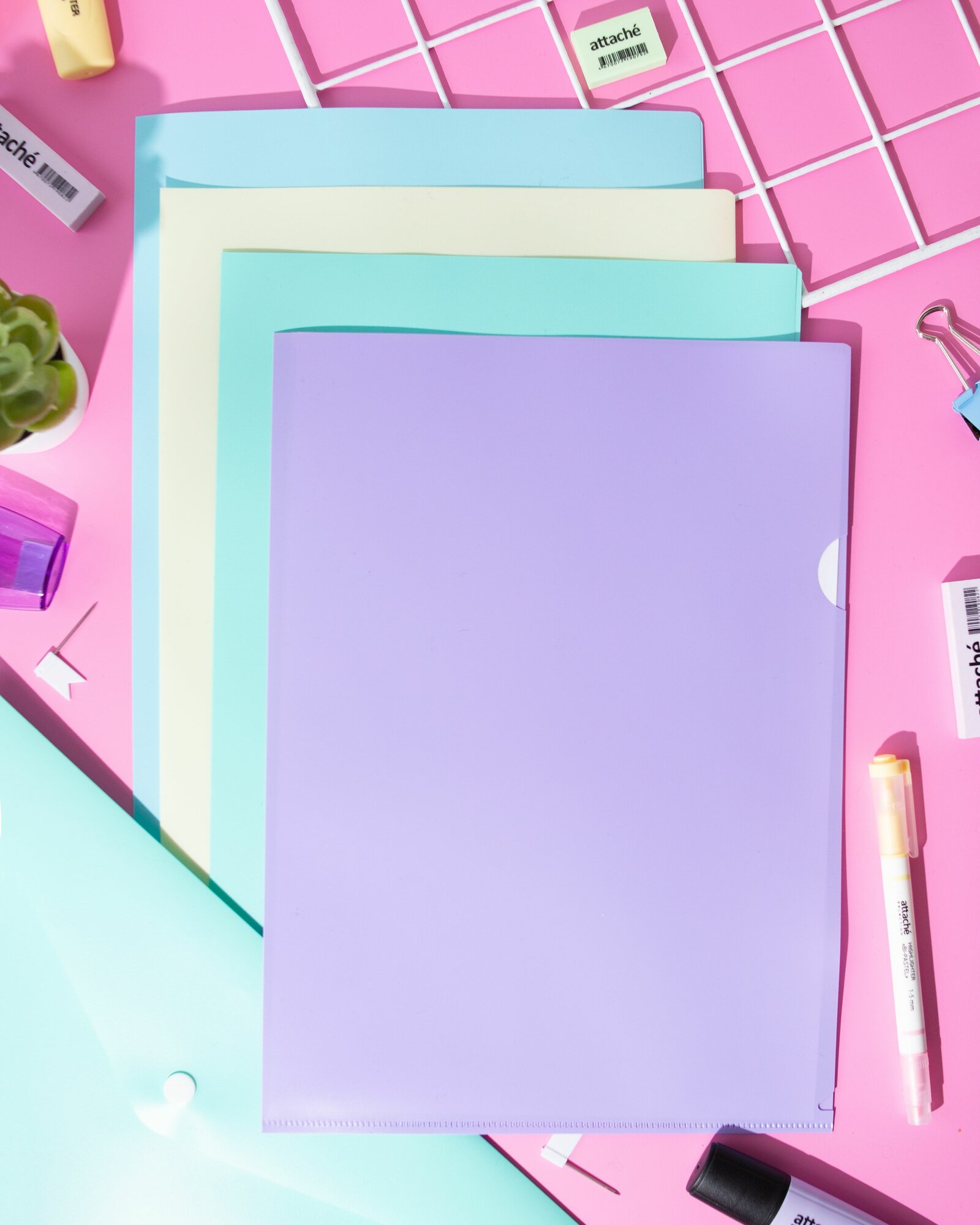 Купить Папка-уголок для документов Attache A4 пластиковая 50 листов сиреневая, желтая, голубой, бирюзовая, розовая