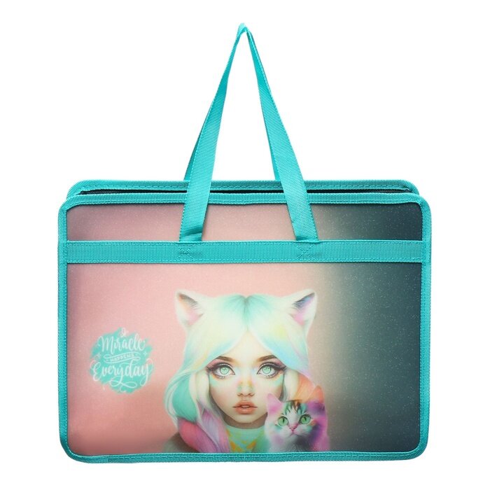 Папка с ручками "Dance Fox", А4, для тетрадей и изо, на молнии, пластик, бирюзовая