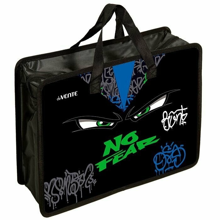 Купить Папка для тетрадей 1 отделение на молнии с ручками А4 deVente «No Fear», пластик 400мкм, с текст. расшир. 10см