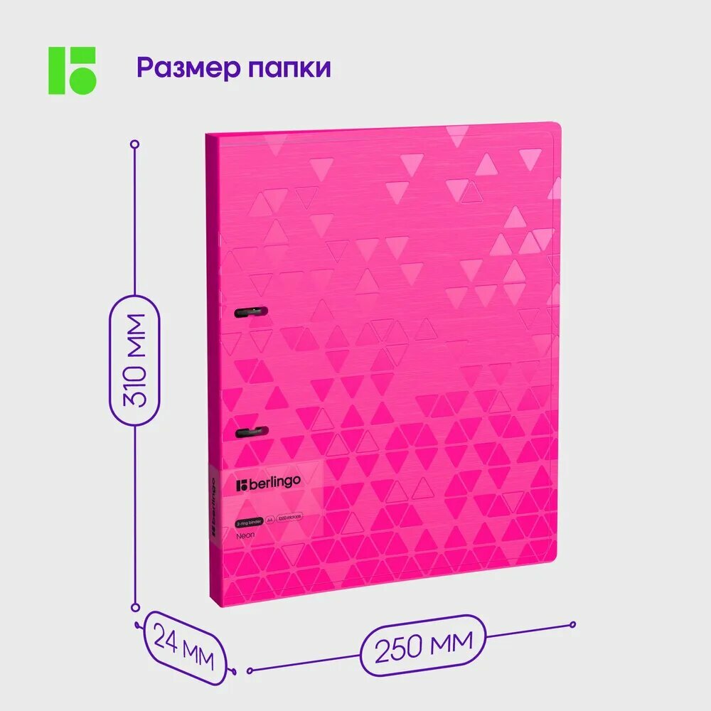 Папка на 2-х кольцах Berlingo Neon (А4, 24мм, 1000мкм, зеленый неон, D-кольца, с внутр. карманом) (RB4_2D392)