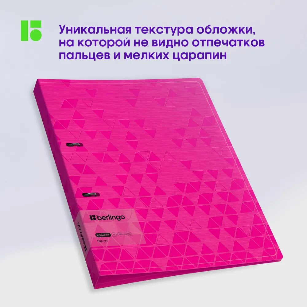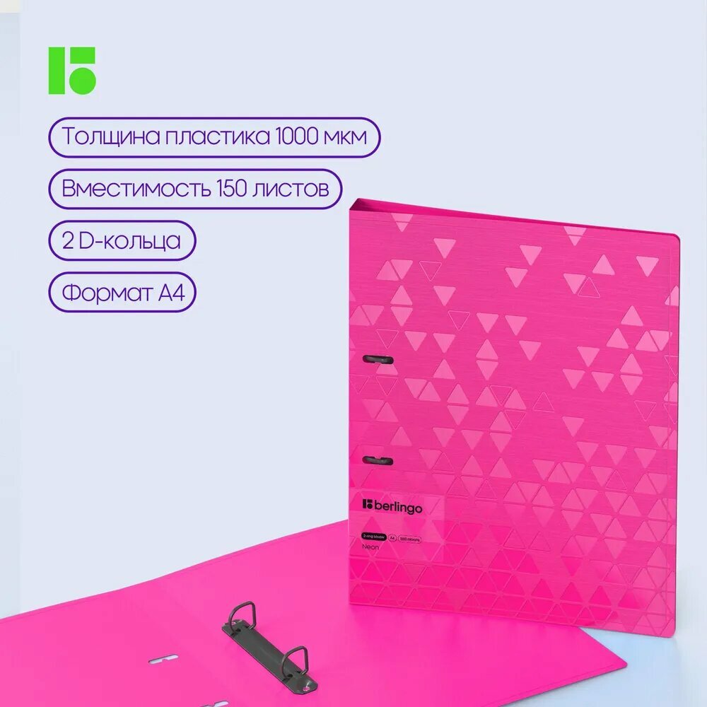 Купить Папка на 2 кольцах Berlingo "Neon", 24мм, 1000мкм, розовый неон, D-кольца, с внутр. карманом
