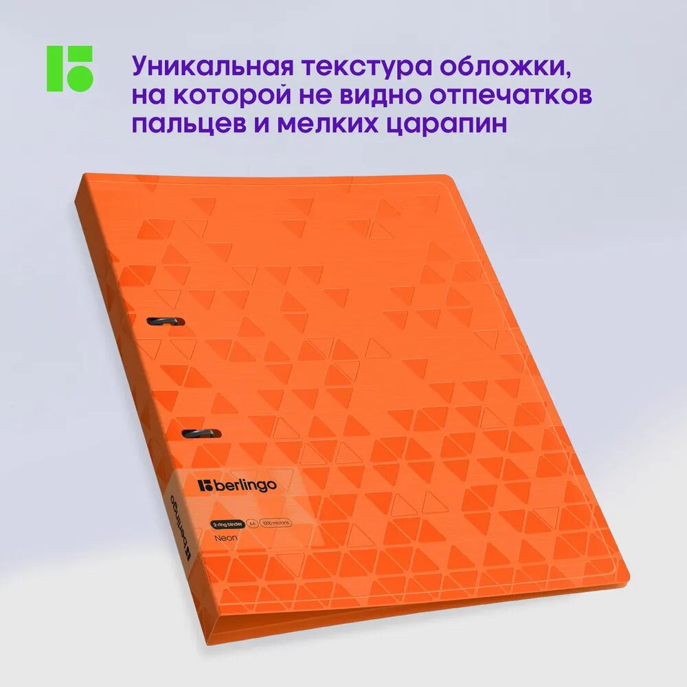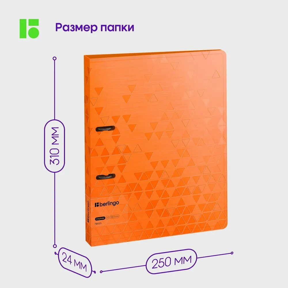 Купить Папка на 2 кольцах Berlingo "Neon", 24мм, 1000мкм, оранжевый неон, D-кольца, с внутр. карманом