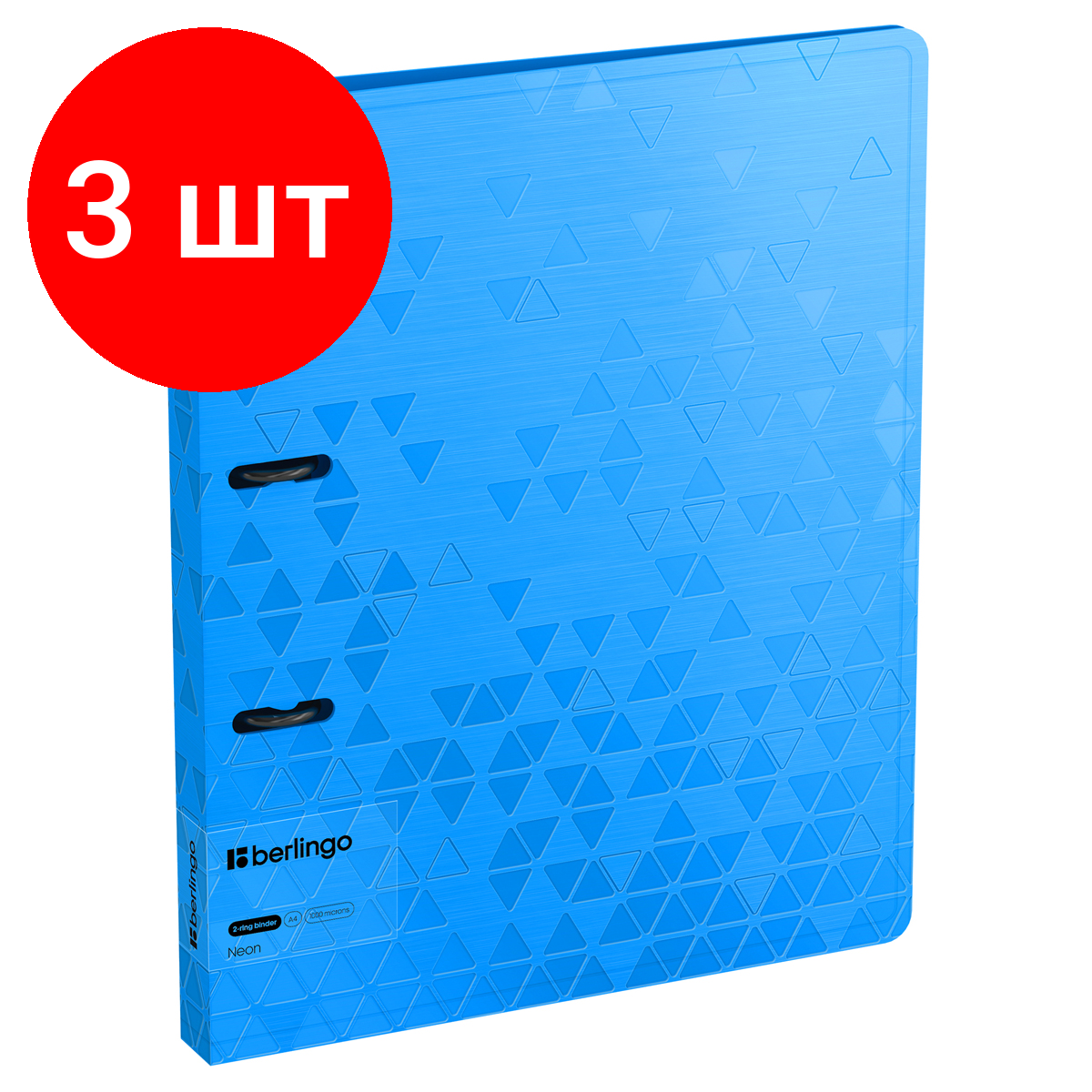 Купить Комплект 3 шт, Папка на 2 кольцах Berlingo "Neon", 24мм, 1000мкм, голубой неон, D-кольца, с внутр. карманом