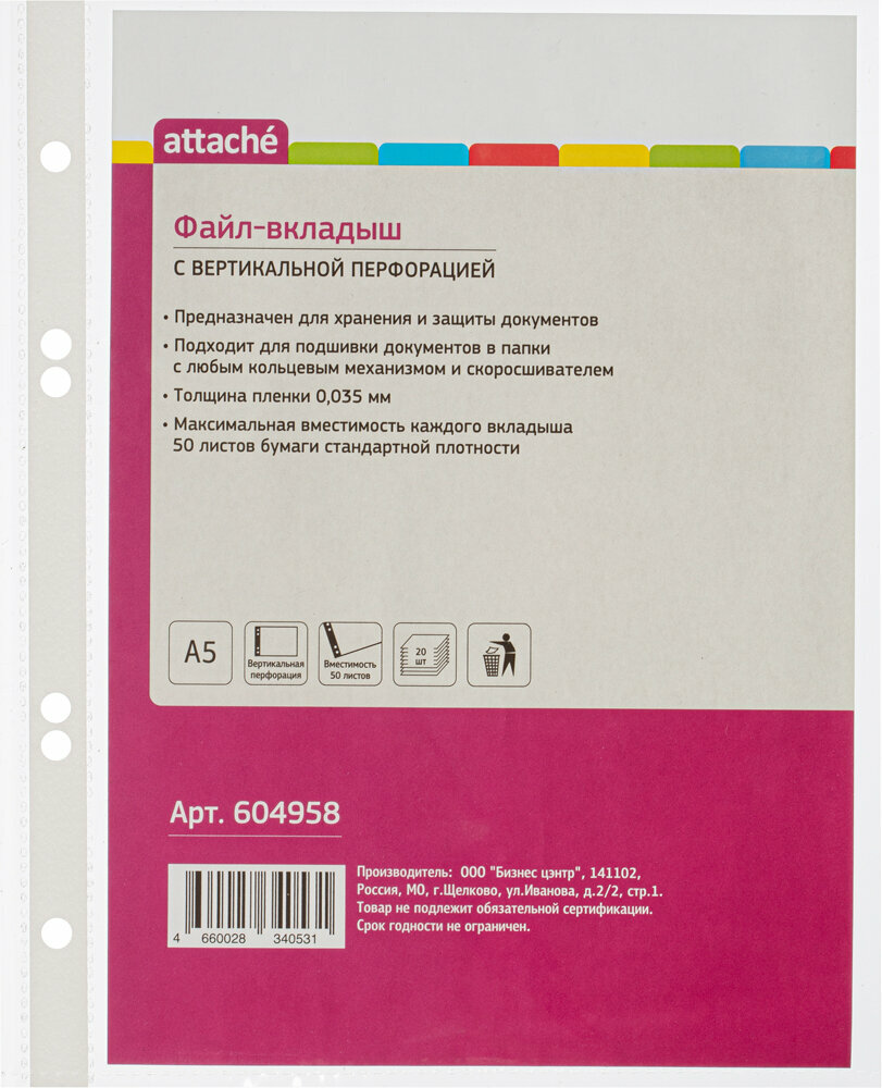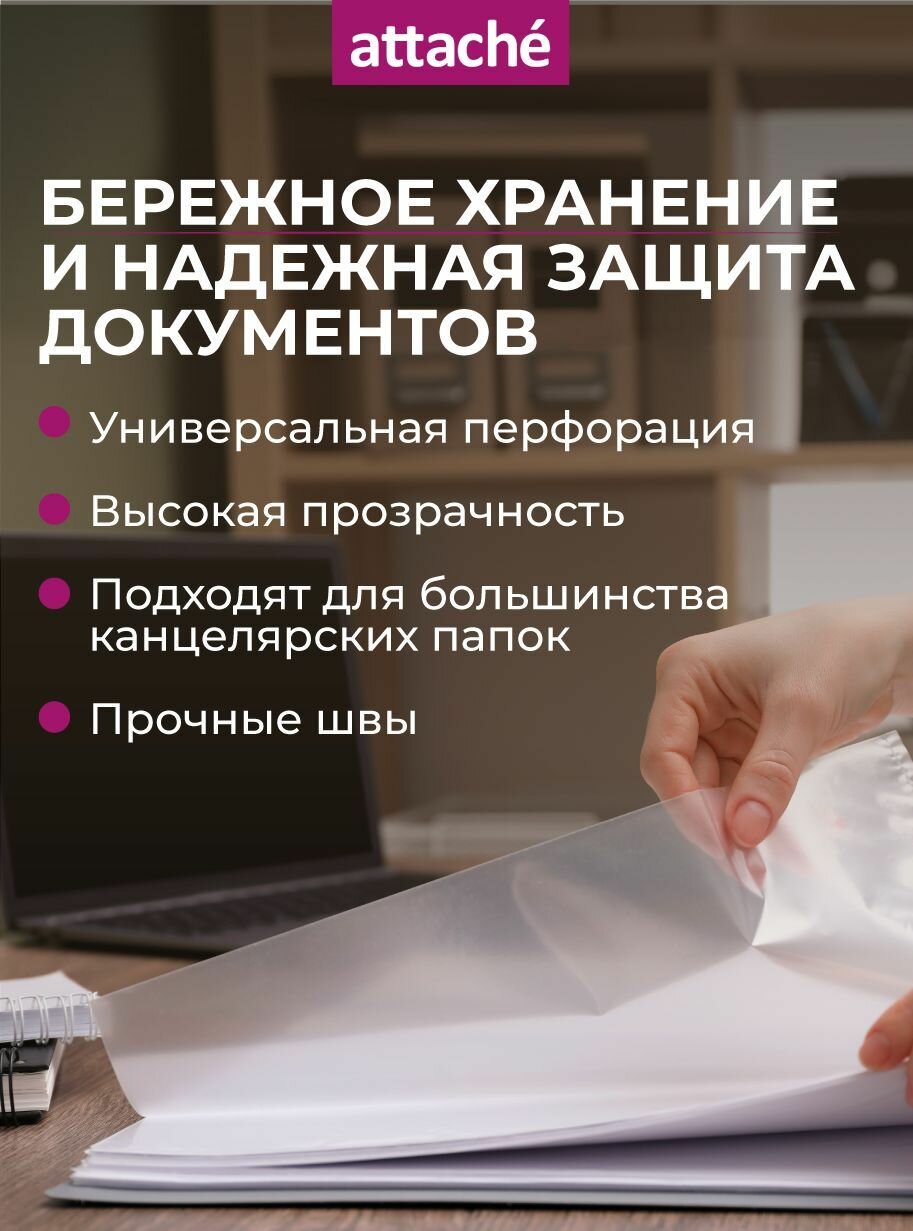Файлы А5, гладкие, Attache, с перфорацией, 35 мкм, 20 шт интересное: