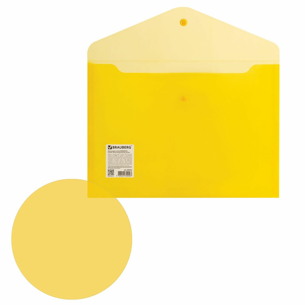 Купить Папка-конверт на кнопке Brauberg (А4, до 100 л. прозрачная желтая, прочная) (270472), 10шт.