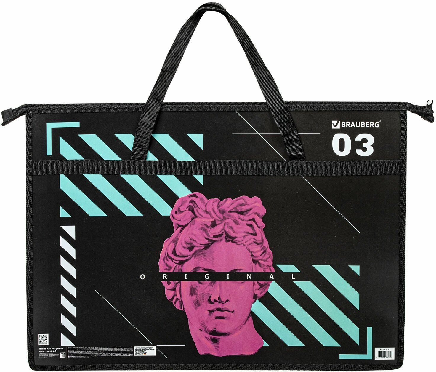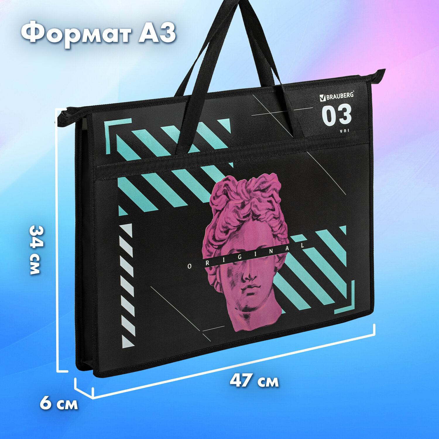 Папка для рисования, рисунков и чертежей с ручками Brauberg А3, пластик, молния сверху, The Original, 271436 интересное: