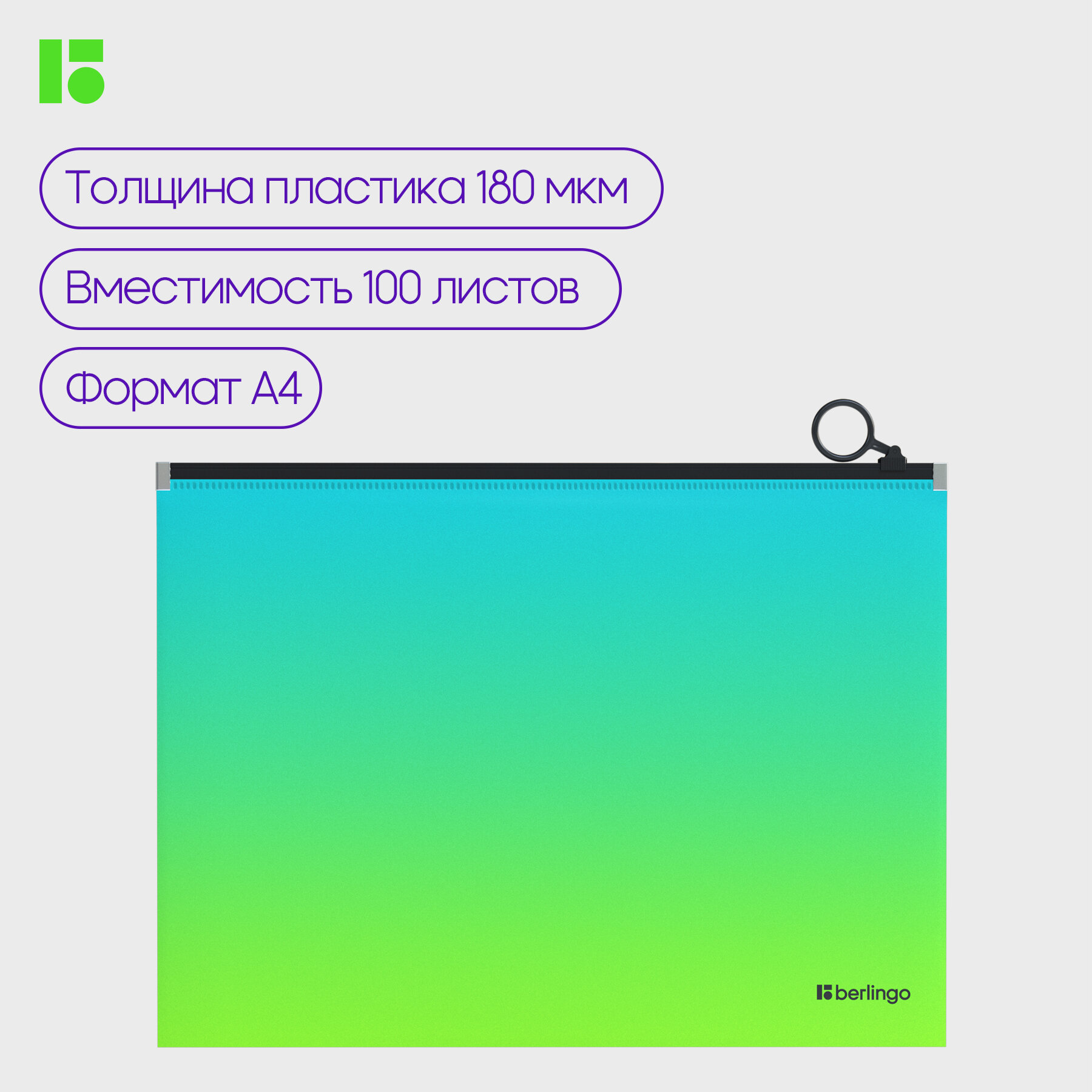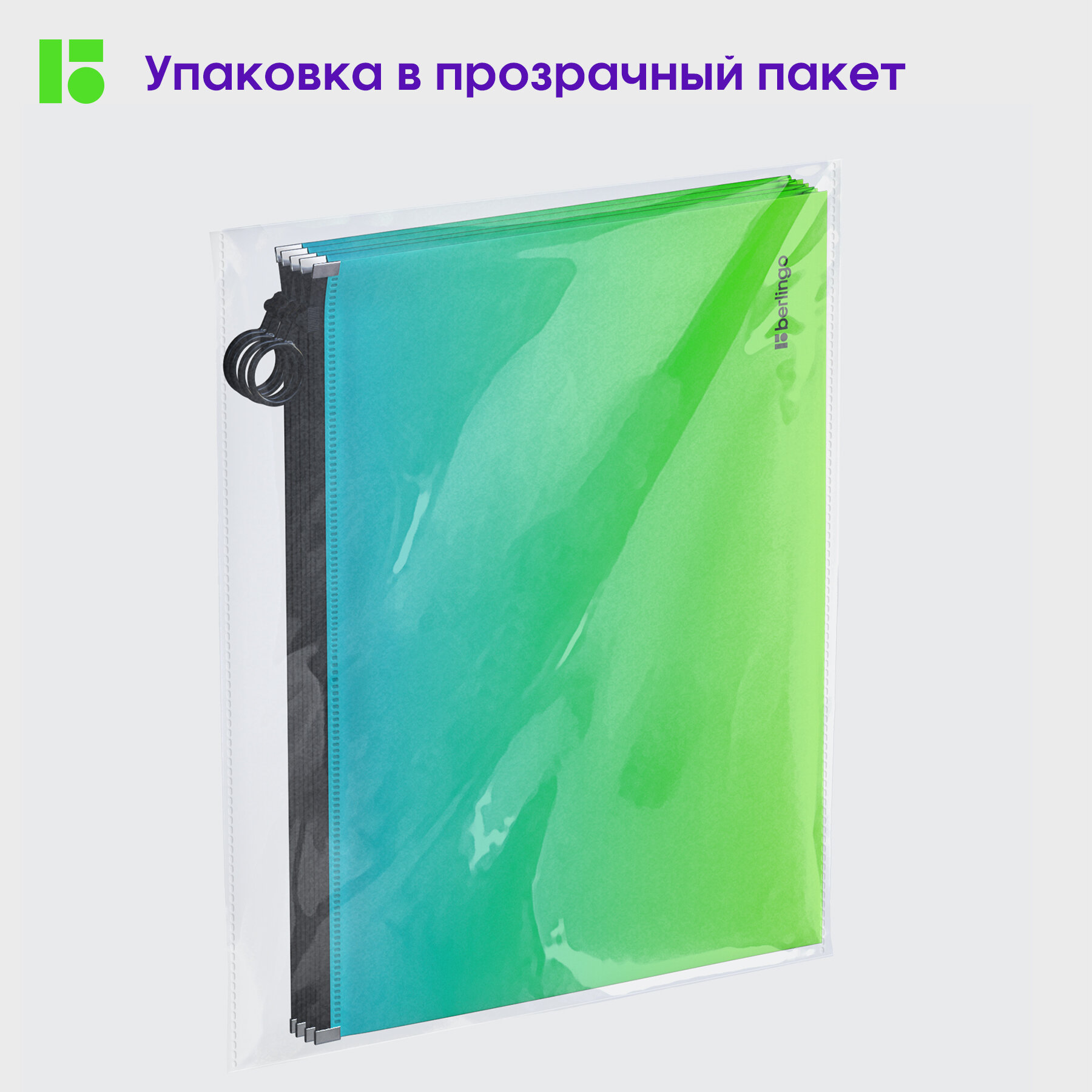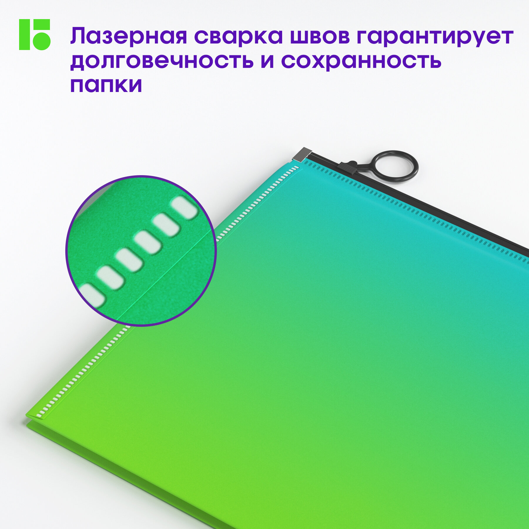 СохранитьПапка-конверт на молнии с расширением Berlingo "Radiance", 180 мкм, голубой/зеленый градиент, 1 шт. интересное: