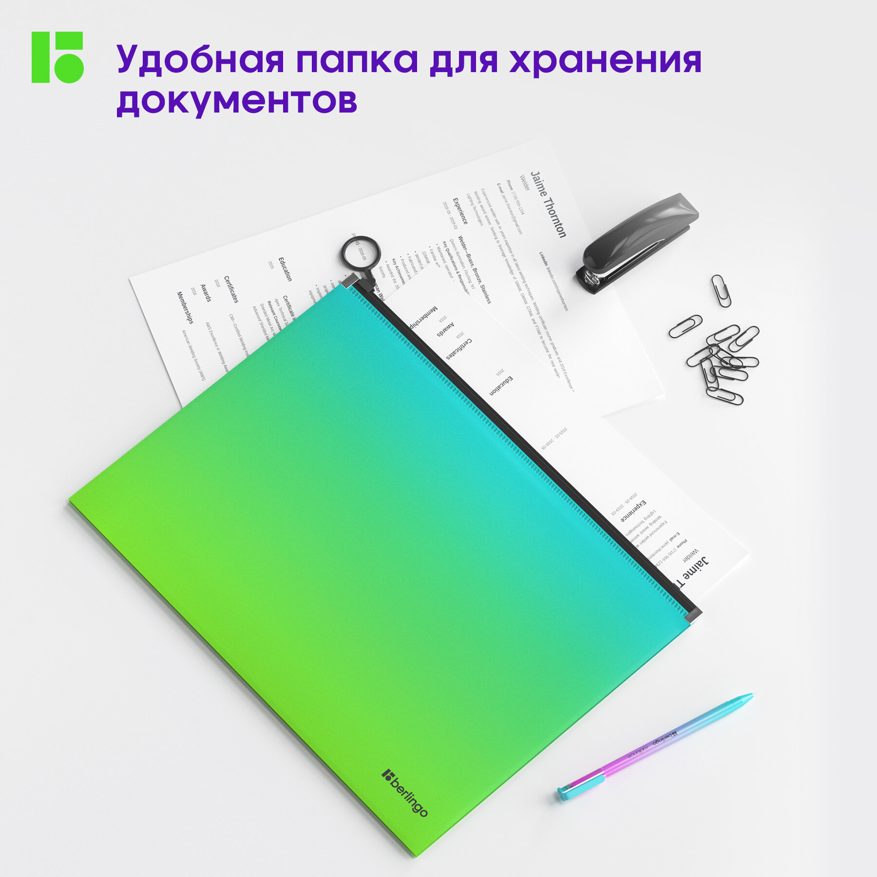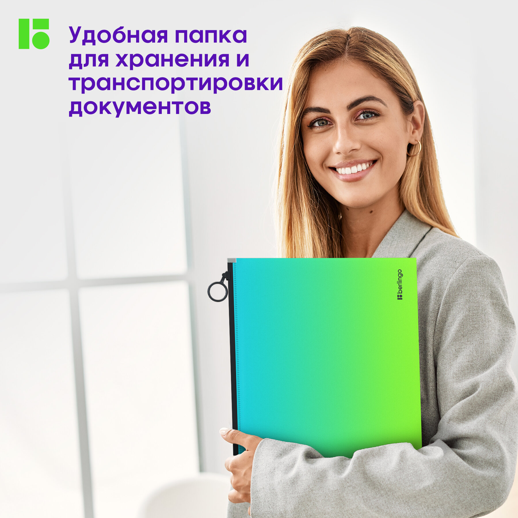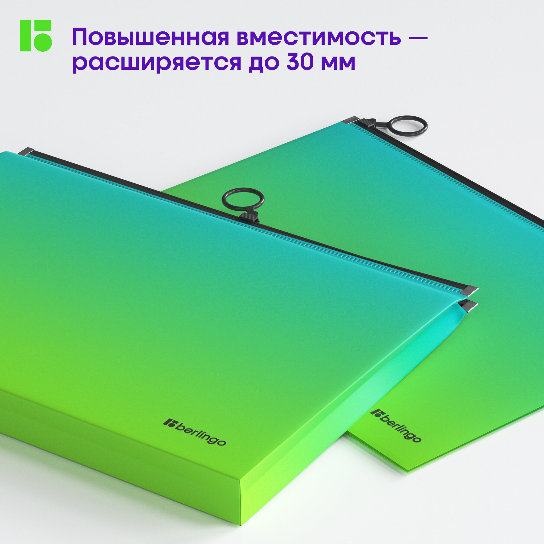 СохранитьПапка-конверт на молнии с расширением Berlingo "Radiance", 180 мкм, голубой/зеленый градиент, 1 шт. интересное: