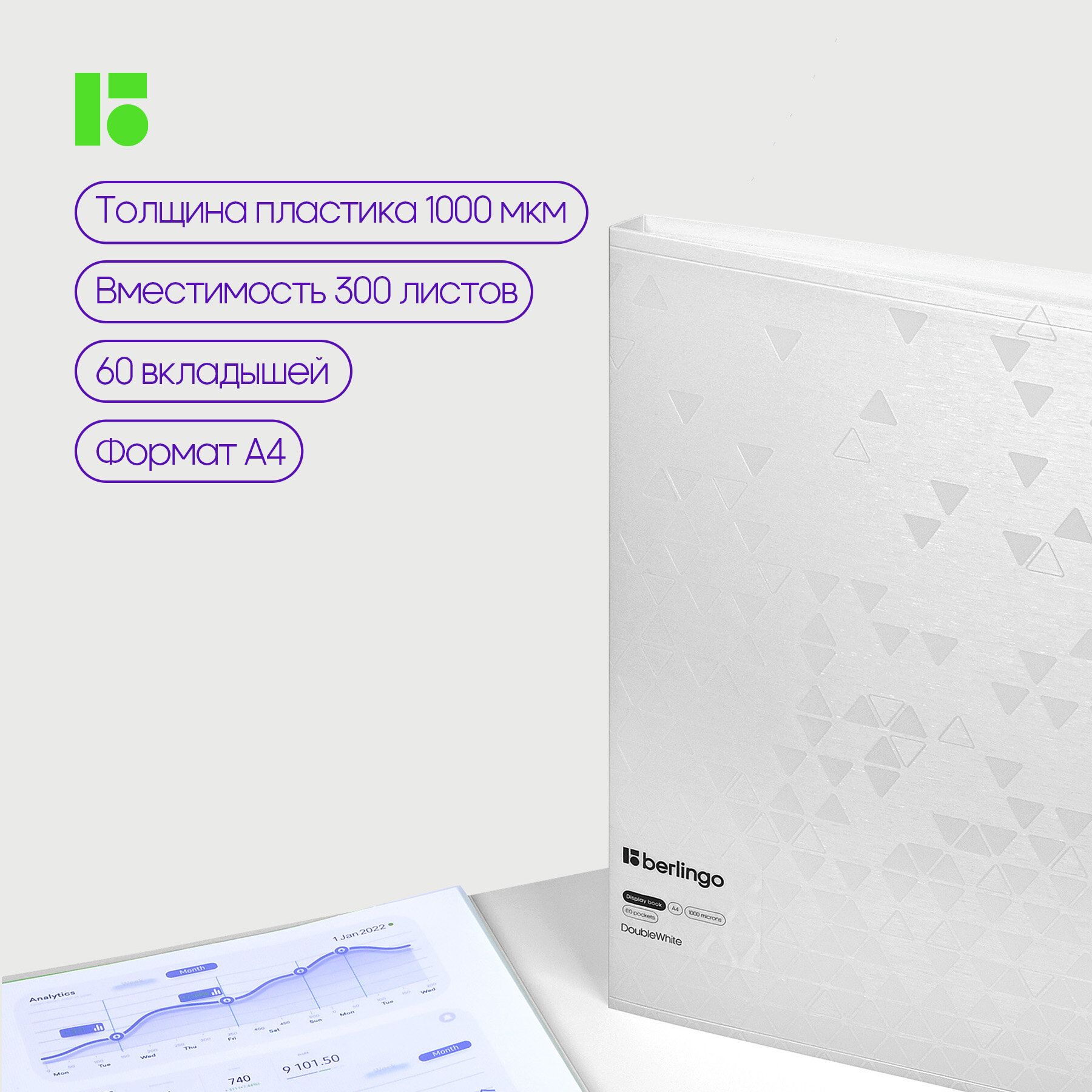 Папка с 60 вкладышами Berlingo "DoubleWhite", 24мм, 1000мкм, белая, с внутр. карманом интересное: