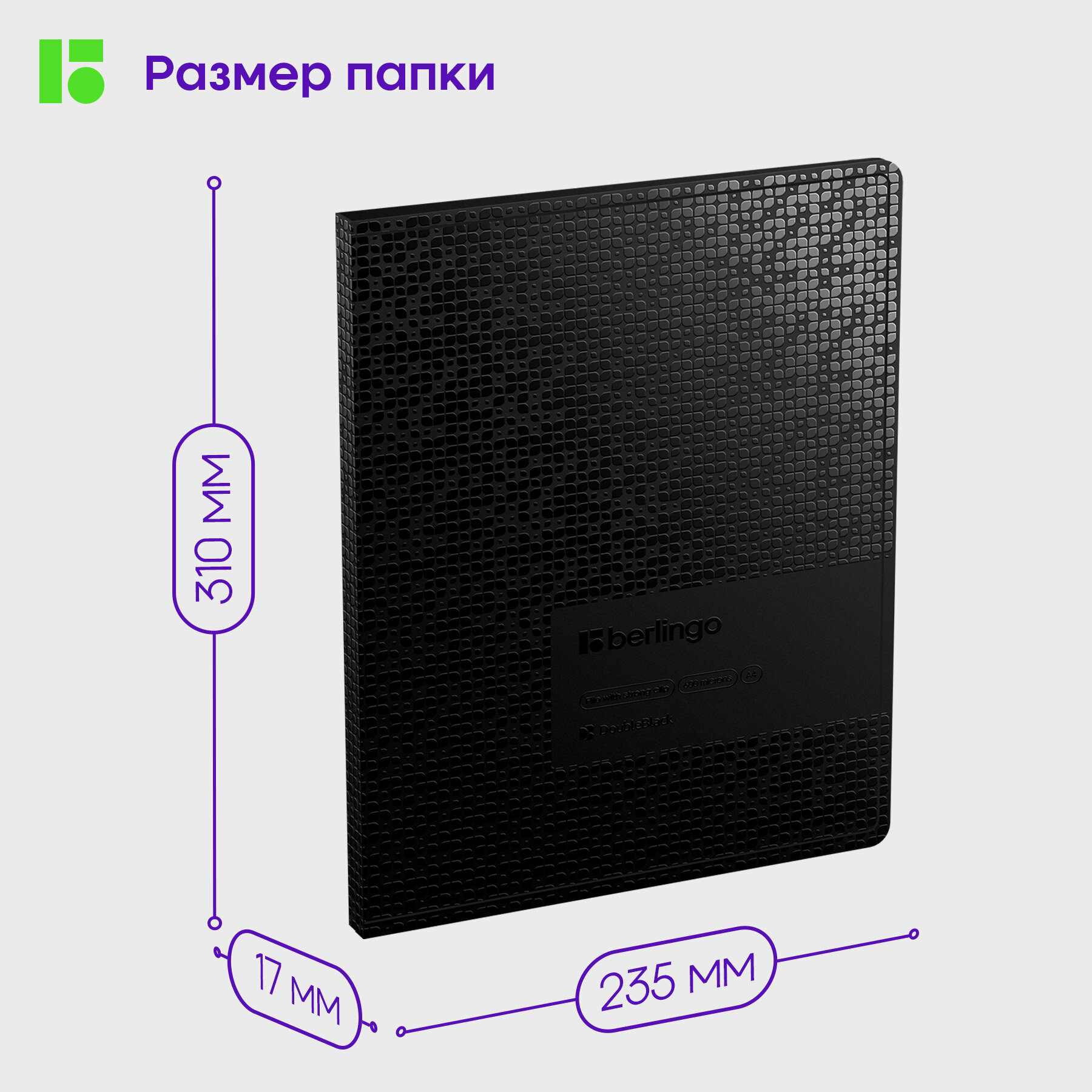 Купить Папка c зажимом Berlingo "DoubleBlack" А4, пластик, 17мм, 600 мкм, черная, с внутр. карманом, с рисунком