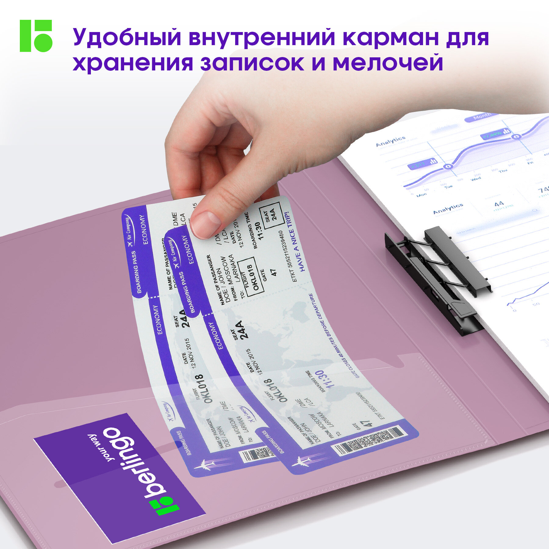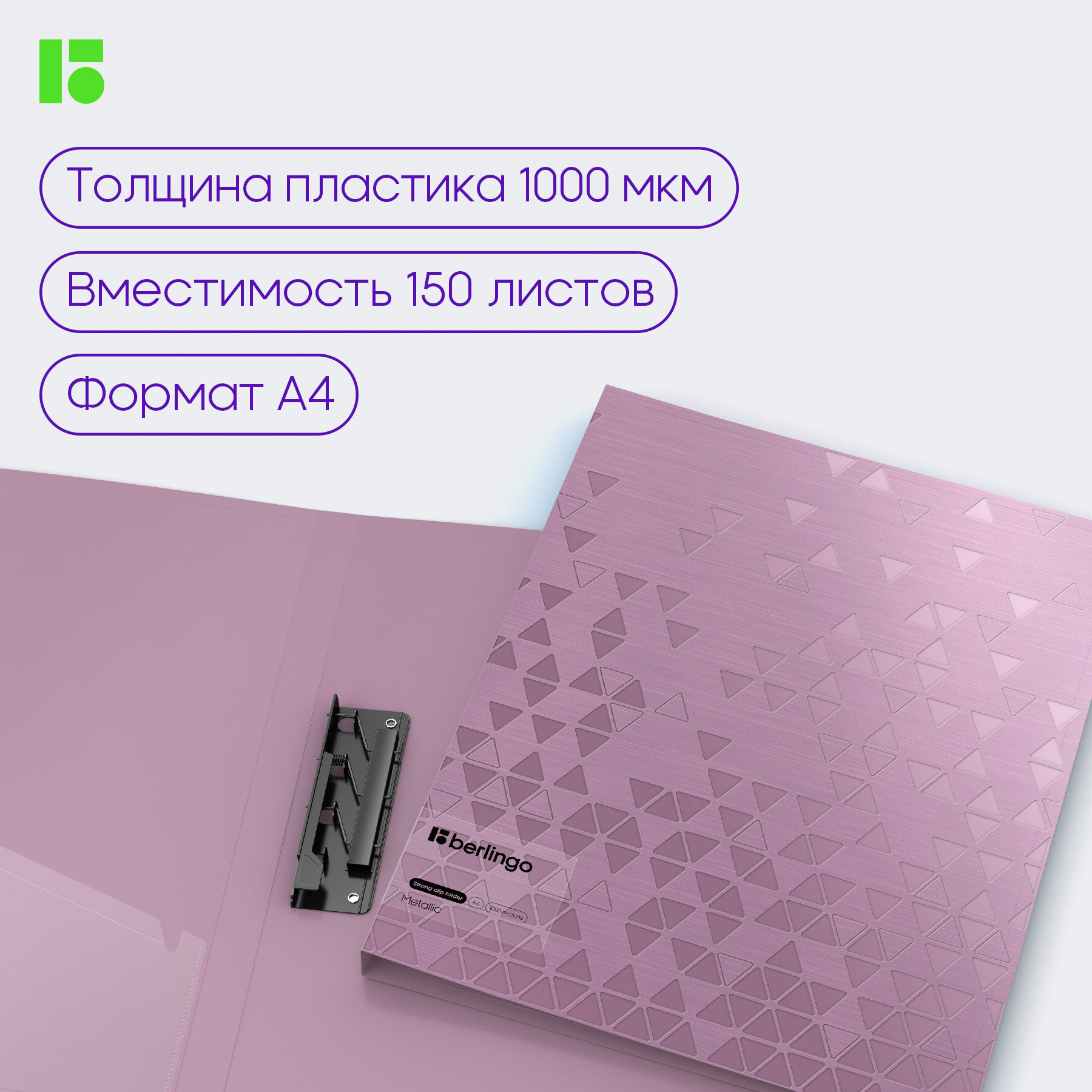 СохранитьПапка для документов А4 Berlingo Metallic c зажимом, сиреневый металлик, с внутренним карманом интересное:
