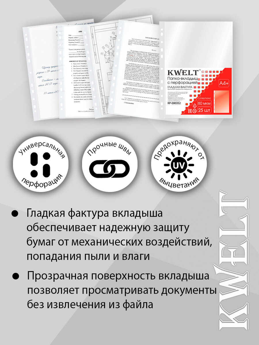 Купить Файлы А4+ для документов " KWELT " 80 мкм, 25 шт. в упаковке, глянцевые