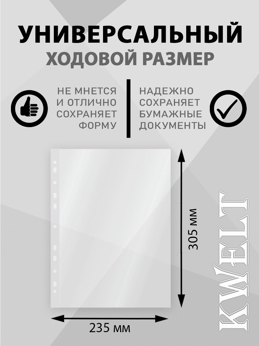 Купить Файлы А4+ для документов " KWELT " 45 мкм, 100 шт, глянцевые