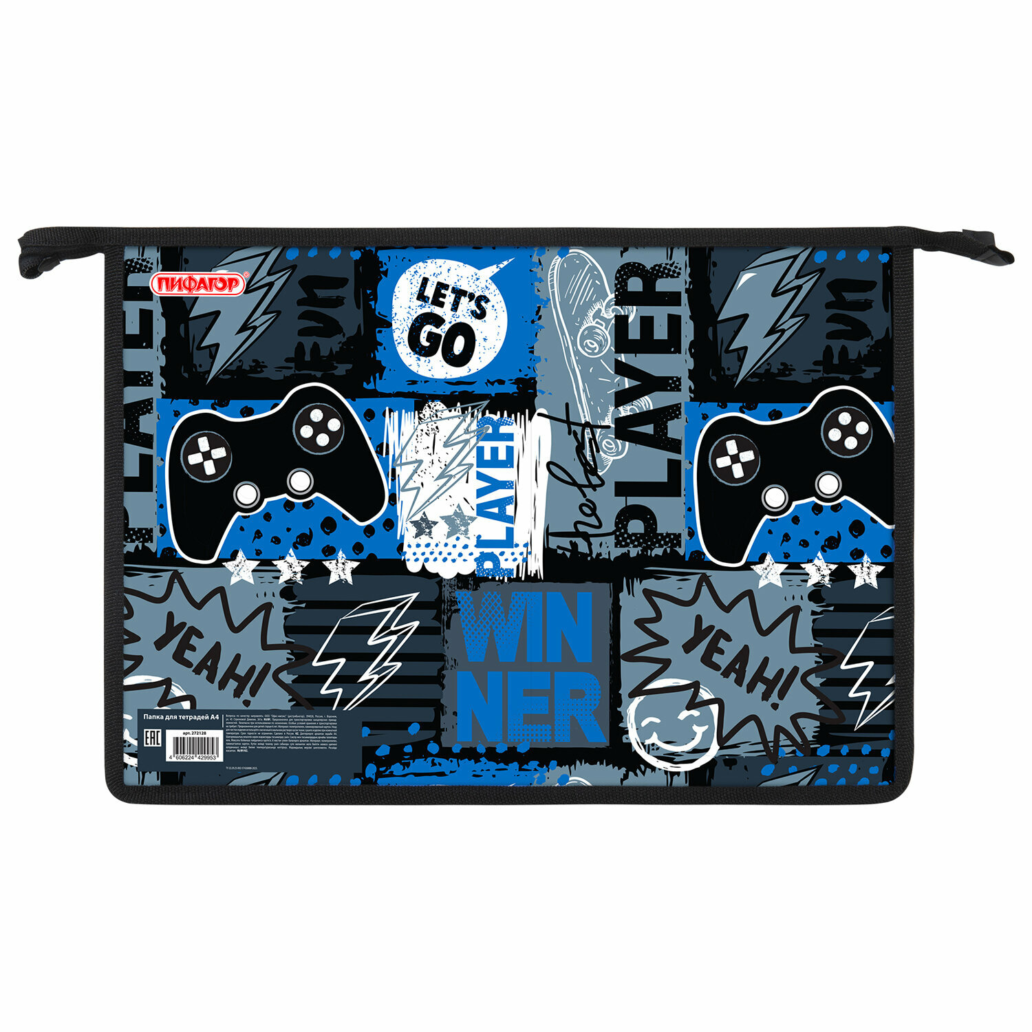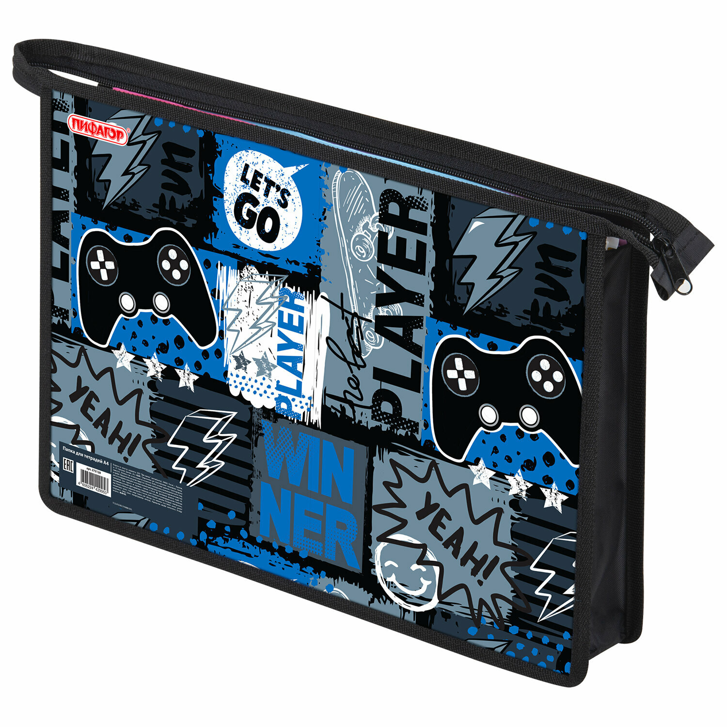 Купить Папка для тетрадей Пифагор А4, 1 отделение, картон/пластик, на молнии, Press play, 272128