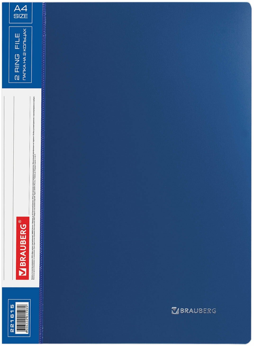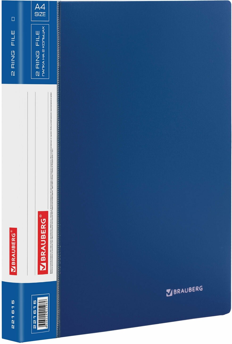 Купить Папка для документов и бумаг А4 на кольцах до 170 листов канцелярская офисная, 25мм, синяя, 0,8мм, Brauberg Стандарт, 221615