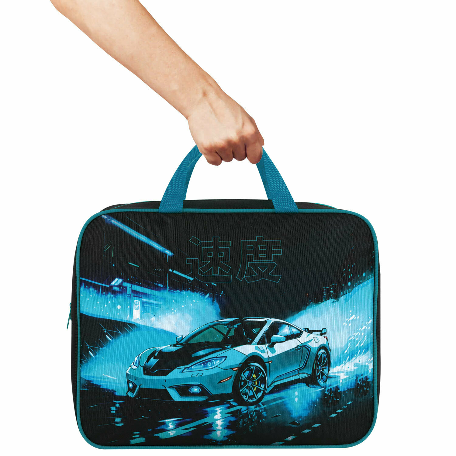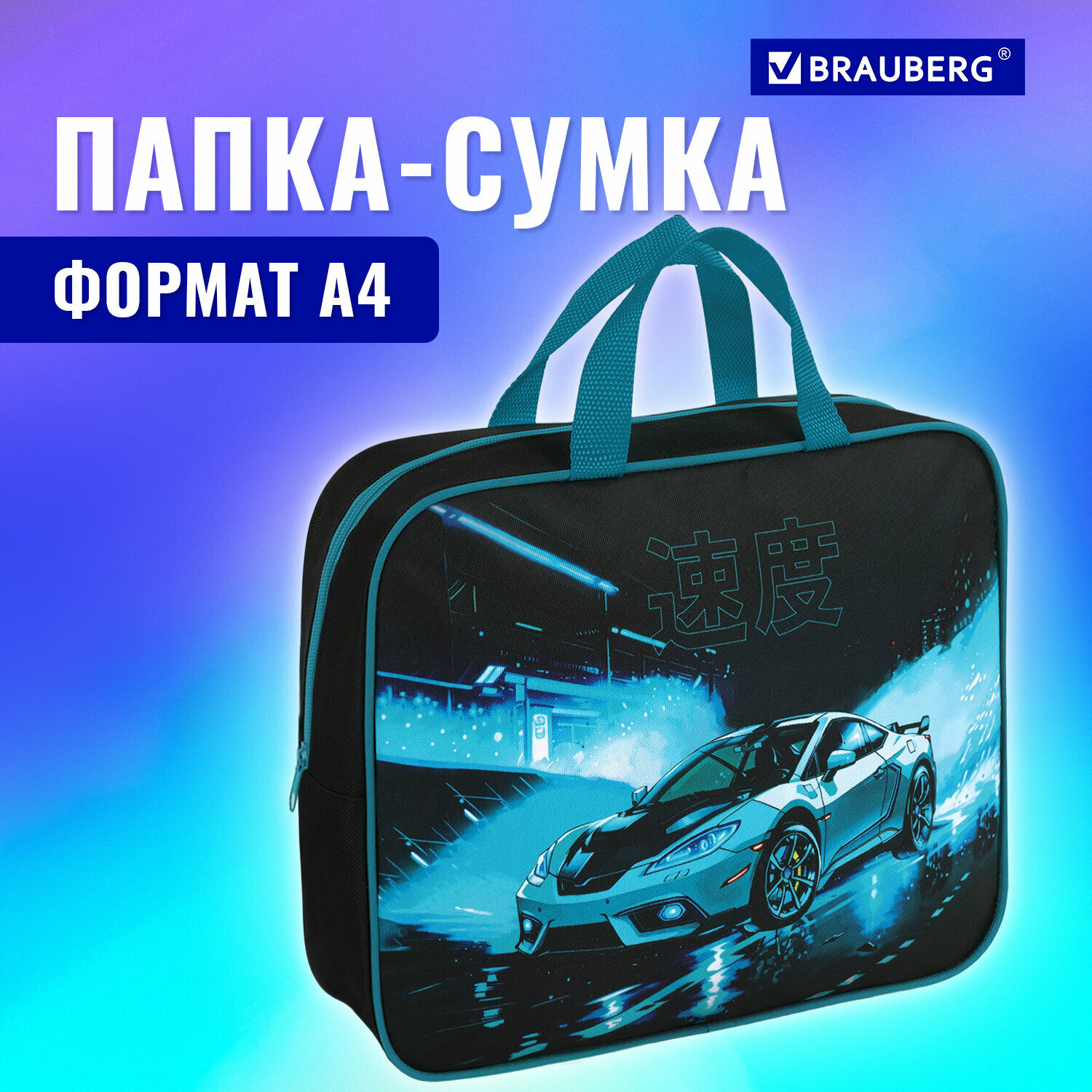 Купить Папка на молнии с ручками Brauberg А4, 1 отделение, полиэстер, 80мм, Night race, 272180