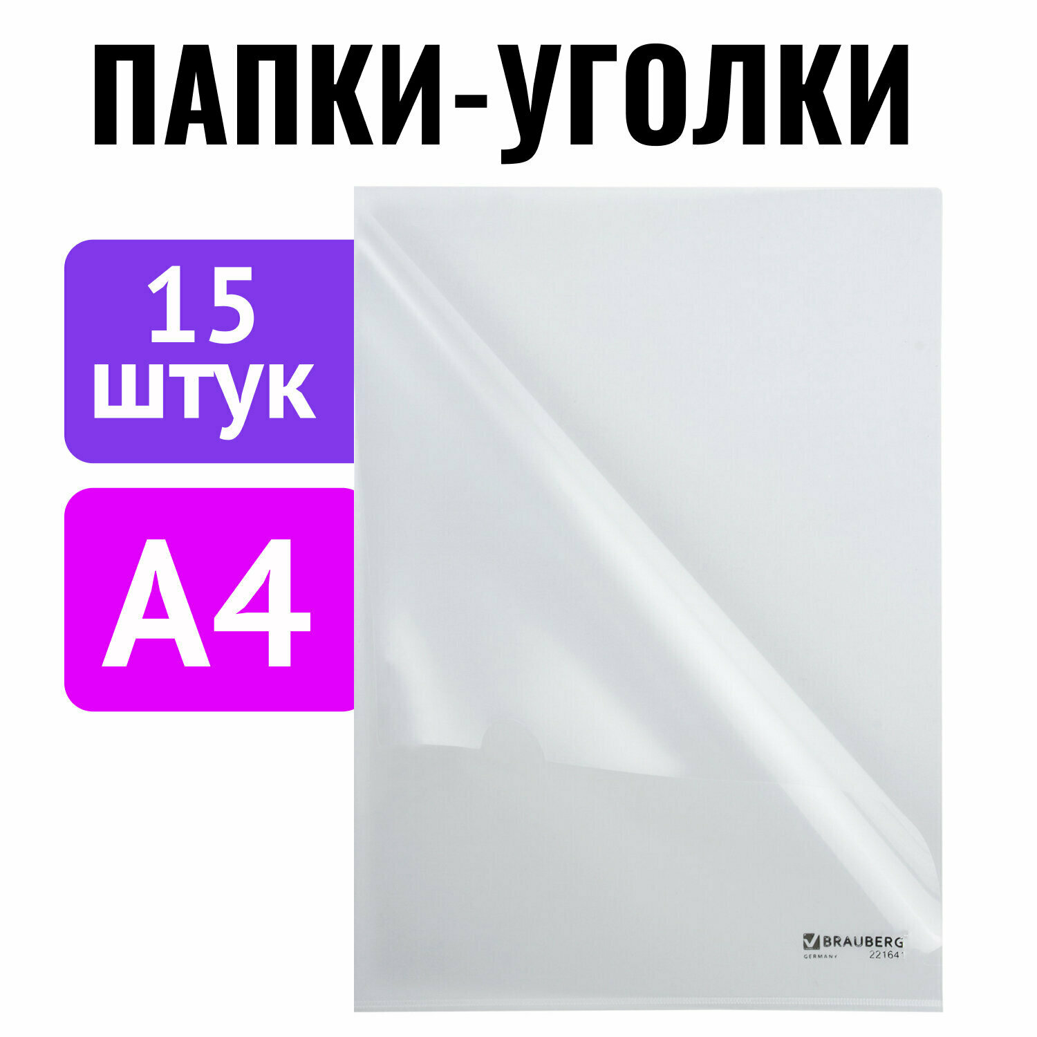 Папка-уголок комплект 15шт. Выгодная упаковка, А4, прозрачная, BRAUBERG, 880525 интересное: