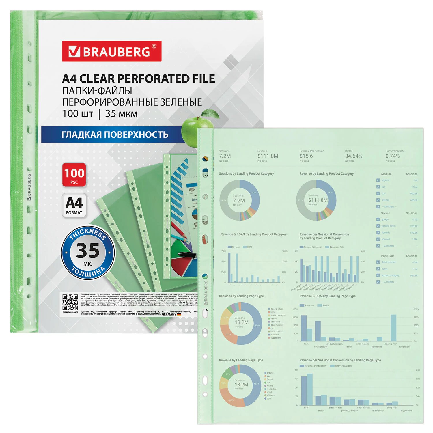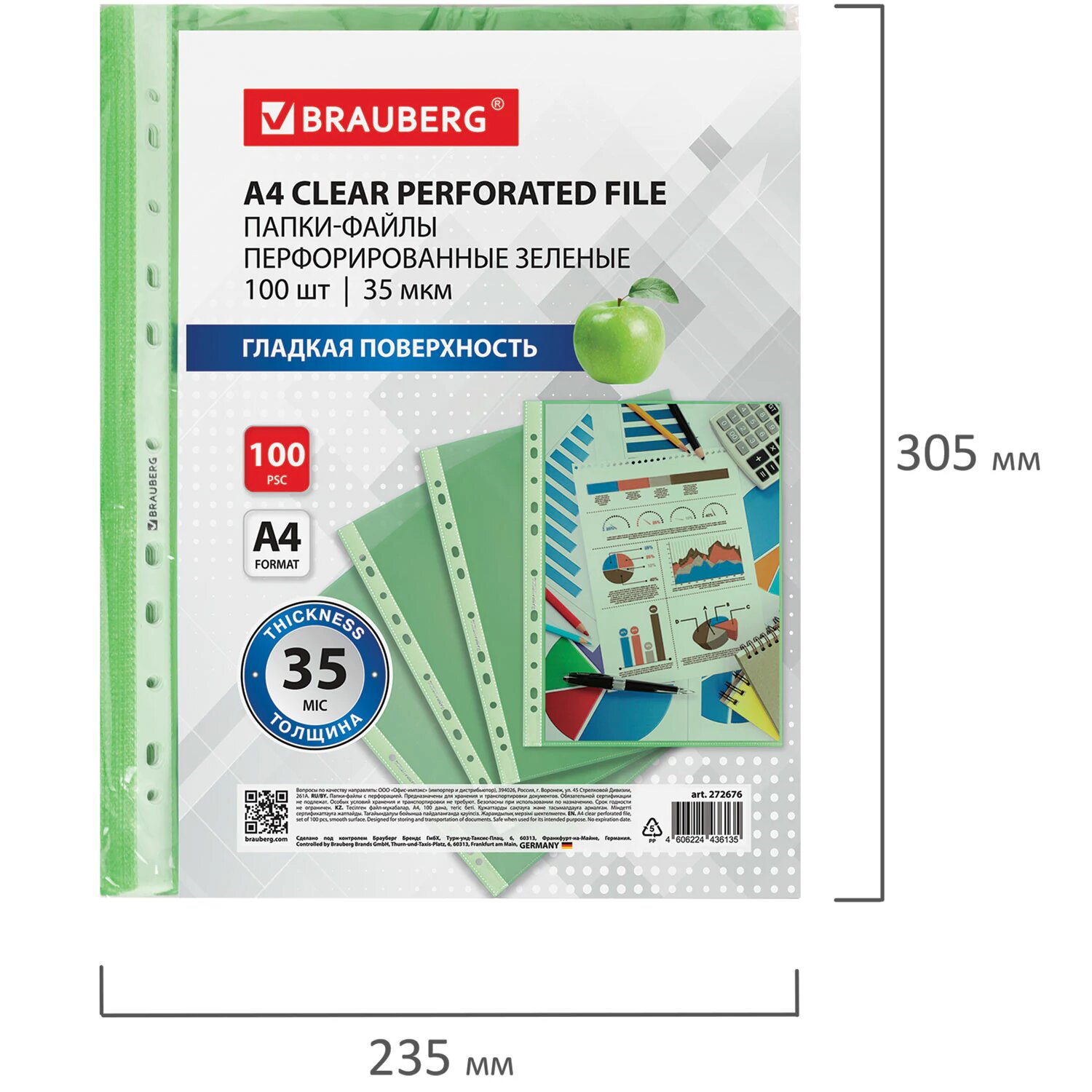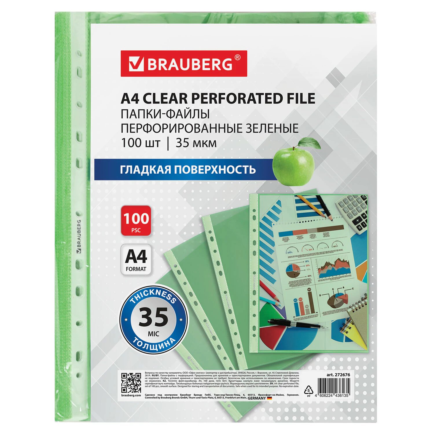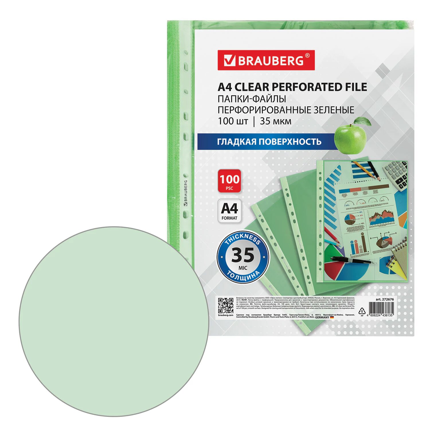 Файлы А4 100 штук перфорированные гладкие, вкладыши в папки для документов и бумаг, мультифора, 35 мкм, зеленые, Brauberg, 272676 интересное: