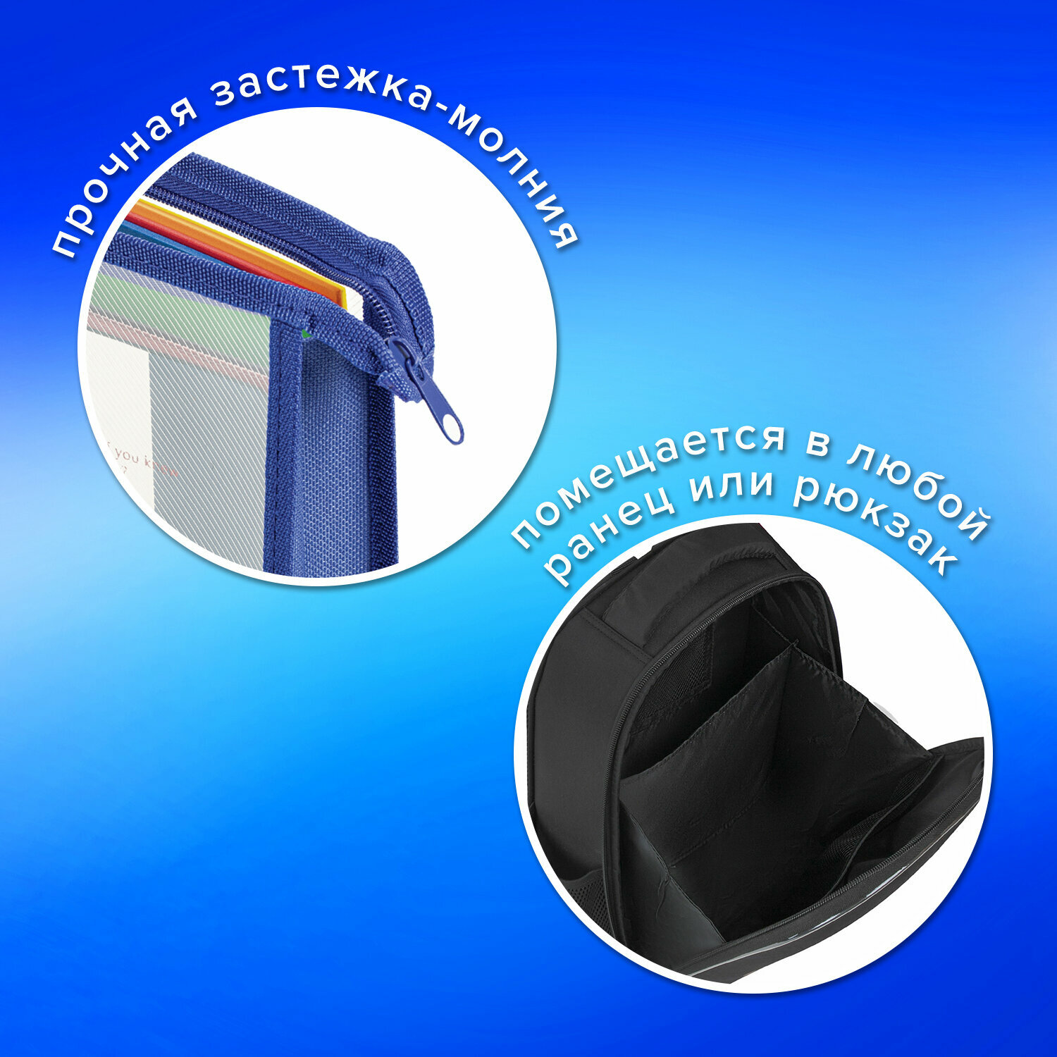 СохранитьПапка для тетрадей А4 Пифагор, пластик, молния сверху, прозрачная, синий, 272109 интересное: