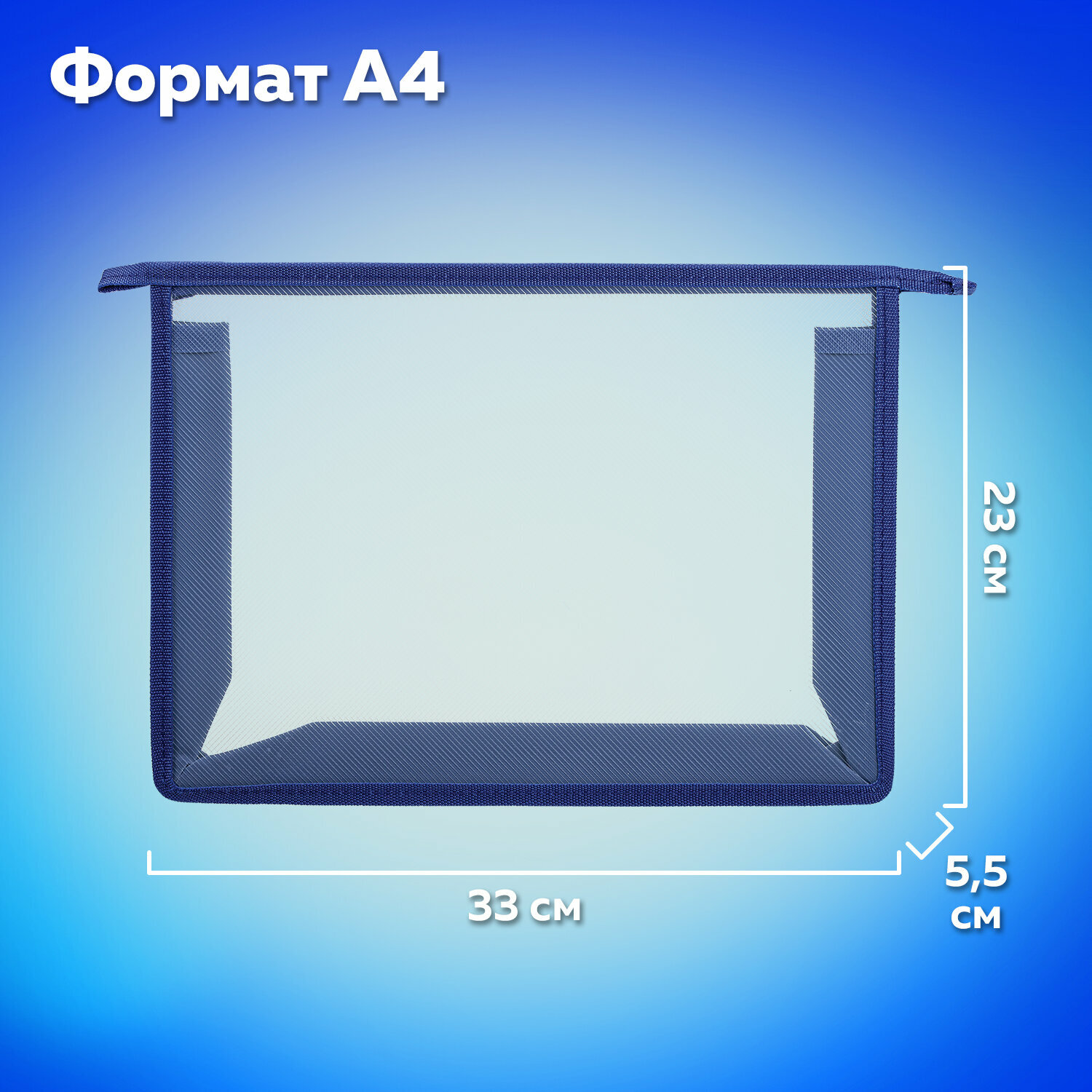 Купить Папка для тетрадей А4 Пифагор, пластик, молния сверху, прозрачная, синий, 272109