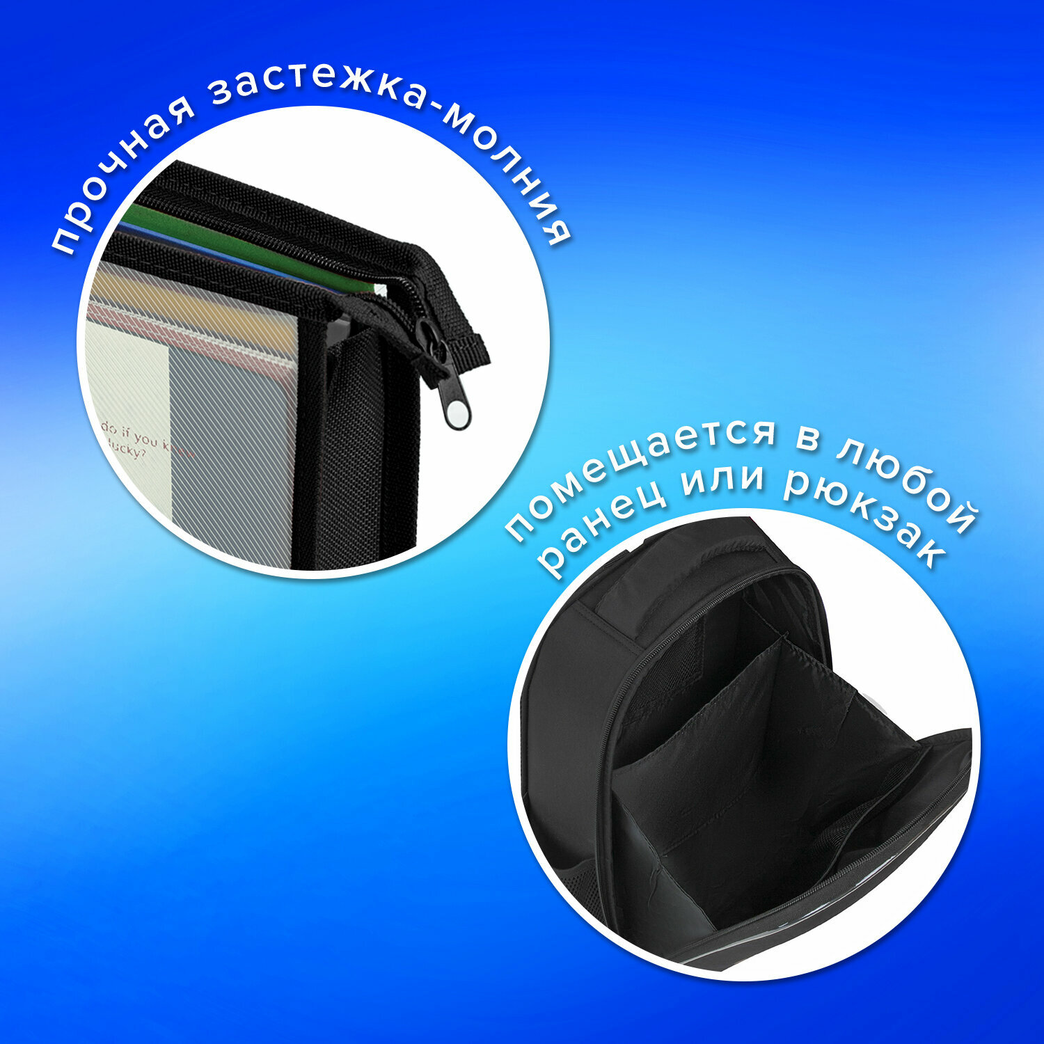 СохранитьПапка для тетрадей А4 Пифагор, пластик, молния сверху, прозрачная, черный, 272107 интересное: