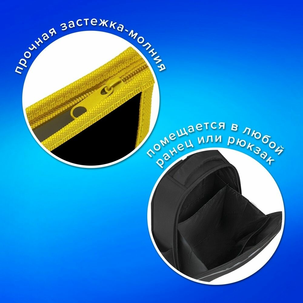 Папка для тетрадей А4 Пифагор, пластик, молния сверху, прозрачная, черный, 272107
