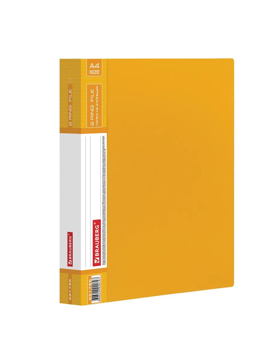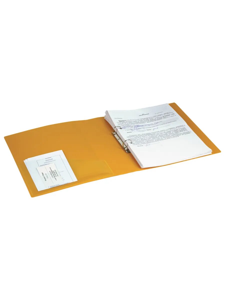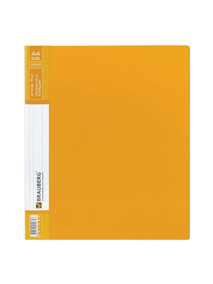 Папка для документов и бумаг на 2 кольцах канцелярская Brauberg Contract, 35 мм, желтая, до 270 листов, 0,9 мм, 221795