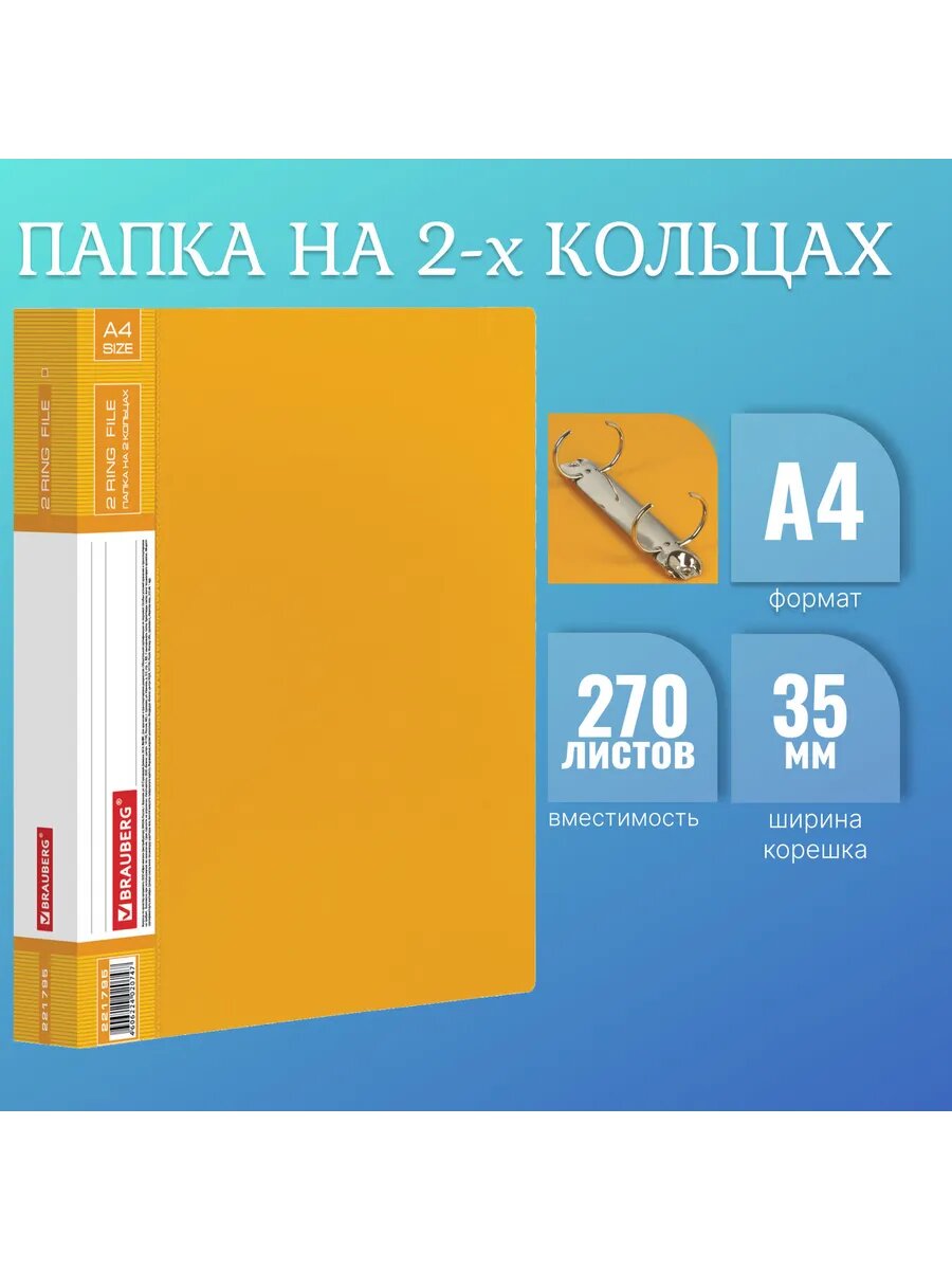 Купить Папка на 2 кольцах BRAUBERG "Contract", 35 мм, желтая, до 2