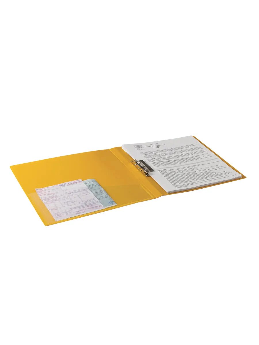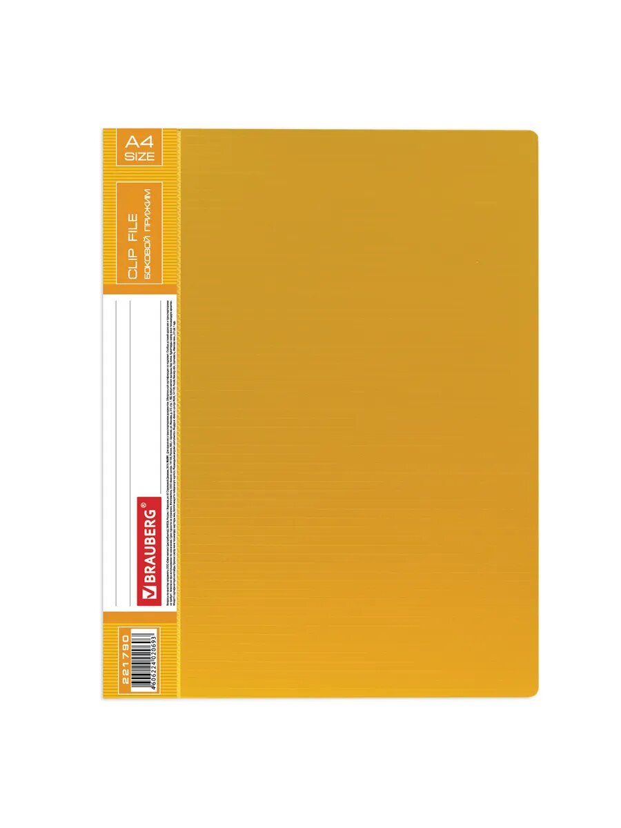 Папка с бок. мет. приж. и внут. карм. BRAUBERG Contract, желтая, до 100 л, 0,7 мм, бизнес-класс, 221790