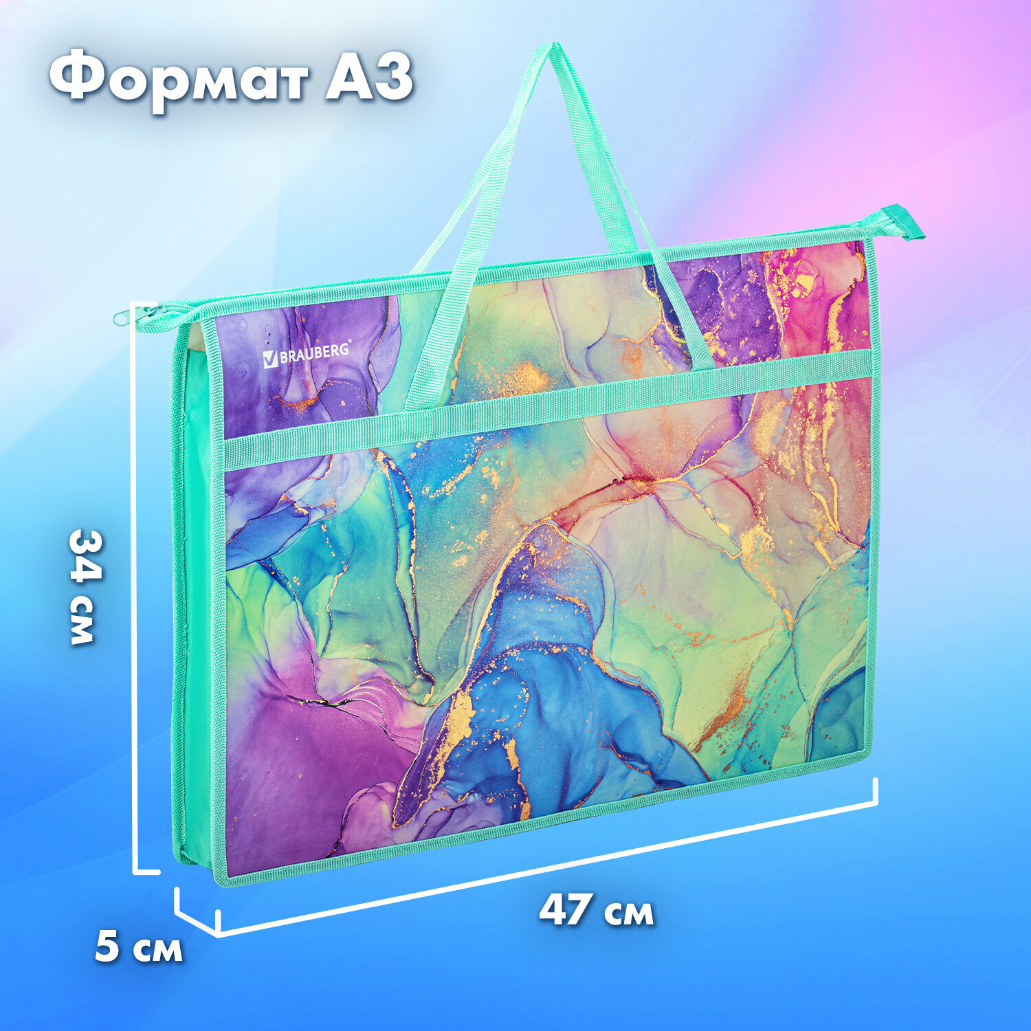 Купить Папка для рисования, рисунков и чертежей с ручками Brauberg А3, пластик, молния сверху, Marble, 271435