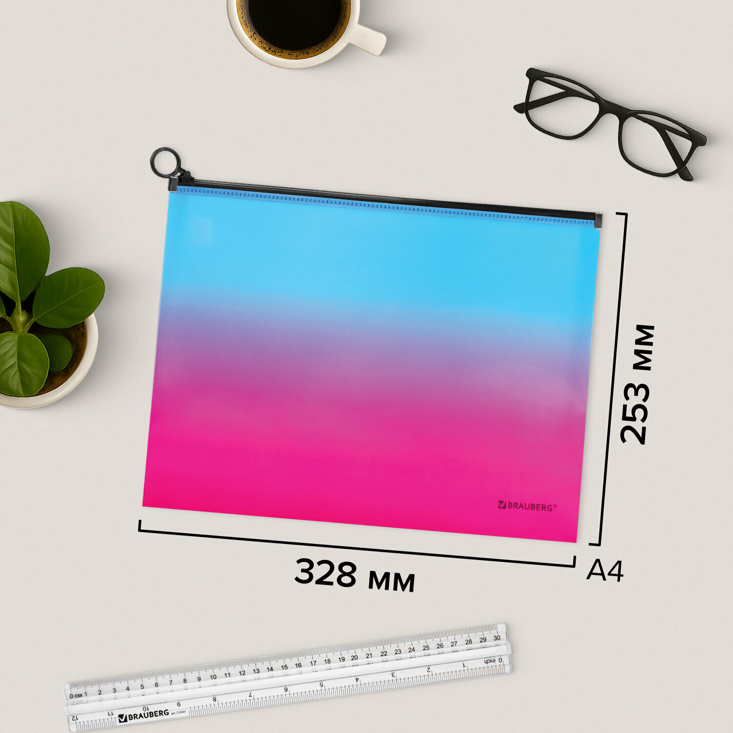 Папка конверт для документов, тетрадей и бумаг А4 на молнии, набор 3 штуки, канцелярия для школы и офиса, градиент, Brauberg, Grade, 271969 интересное: