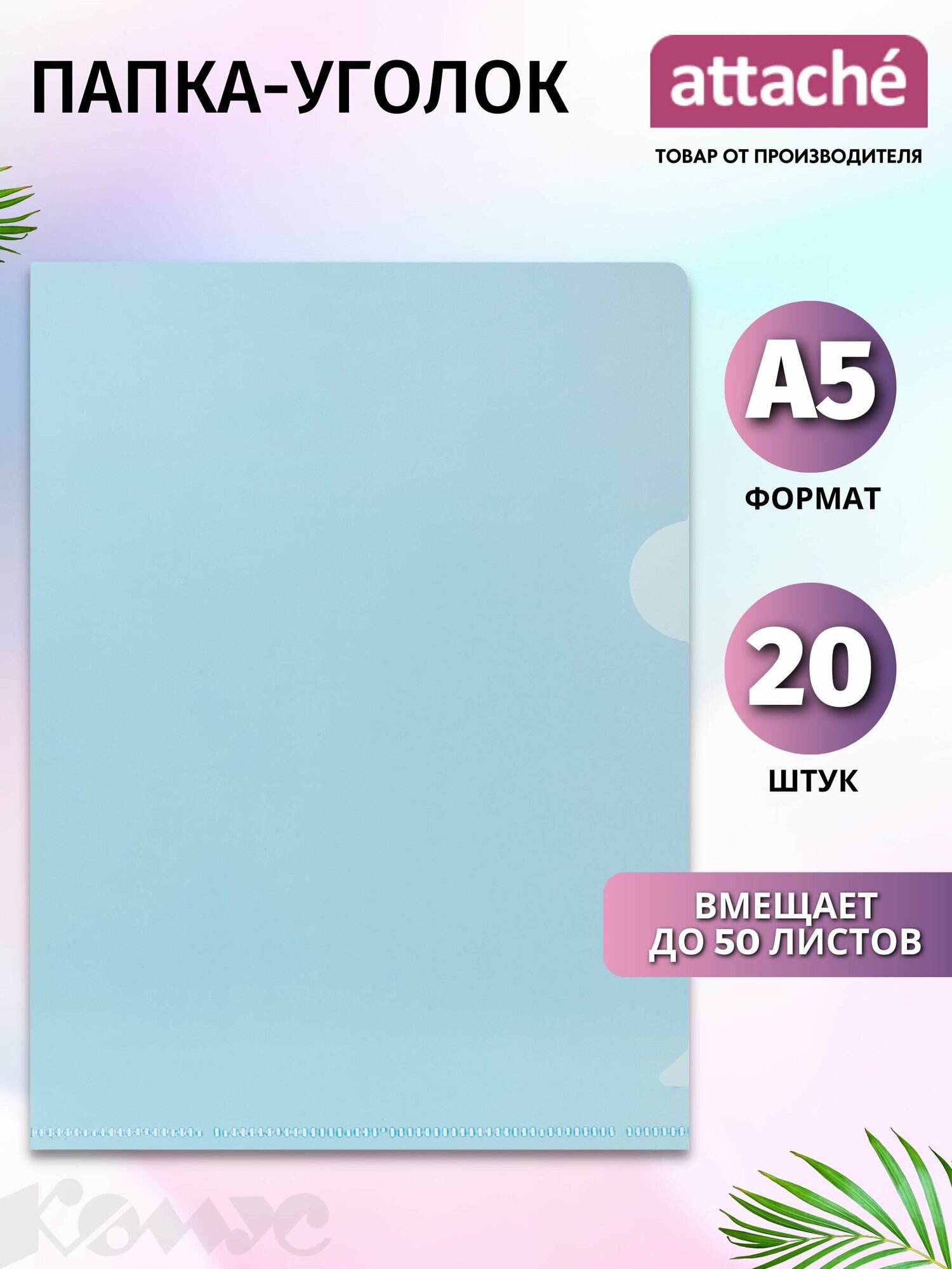 Папка-уголок для документов Attache A5 пластиковая 50 листов синяя интересное: