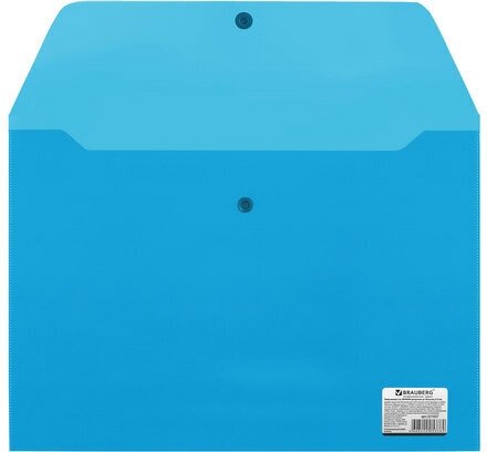 Купить Папка-конверт с кнопкой Brauberg А4, 150 мкм, до 100 листов, прозрачная, синяя (221637)