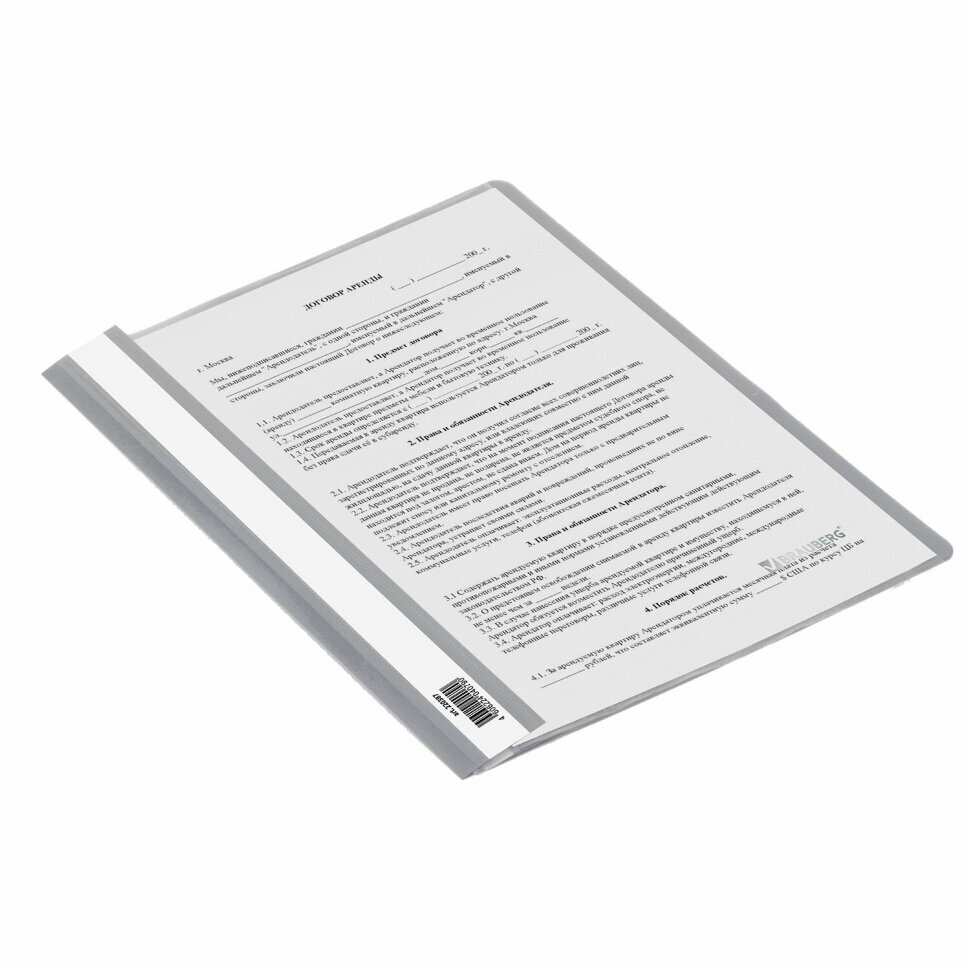 Купить Скоросшиватель пластиковый BRAUBERG, А4, 130/180 мкм, серый, 220387, 220387