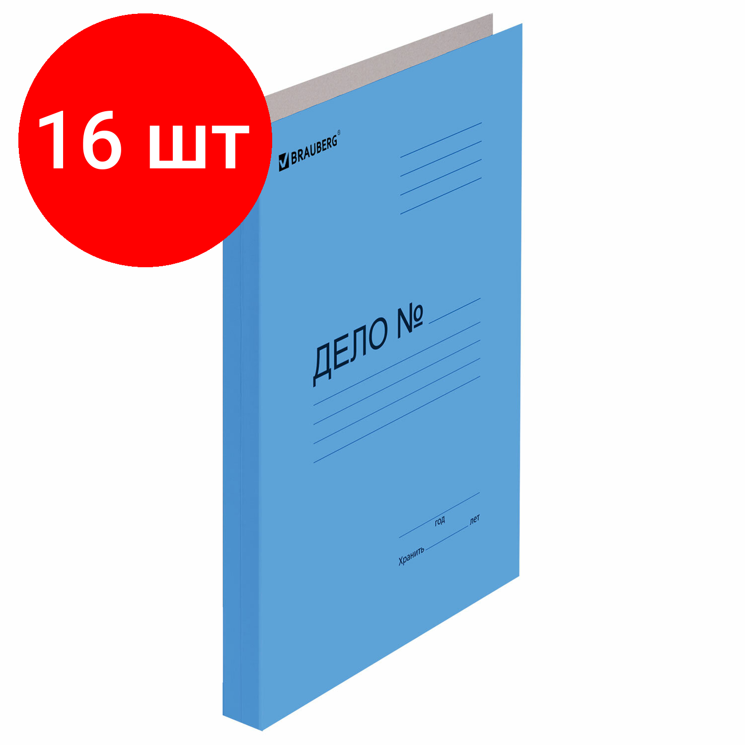 Купить Комплект 16 шт, Скоросшиватель картонный мелованный BRAUBERG, гарантированная плотность 360 г/м2, синий, до 200 листов, 121518