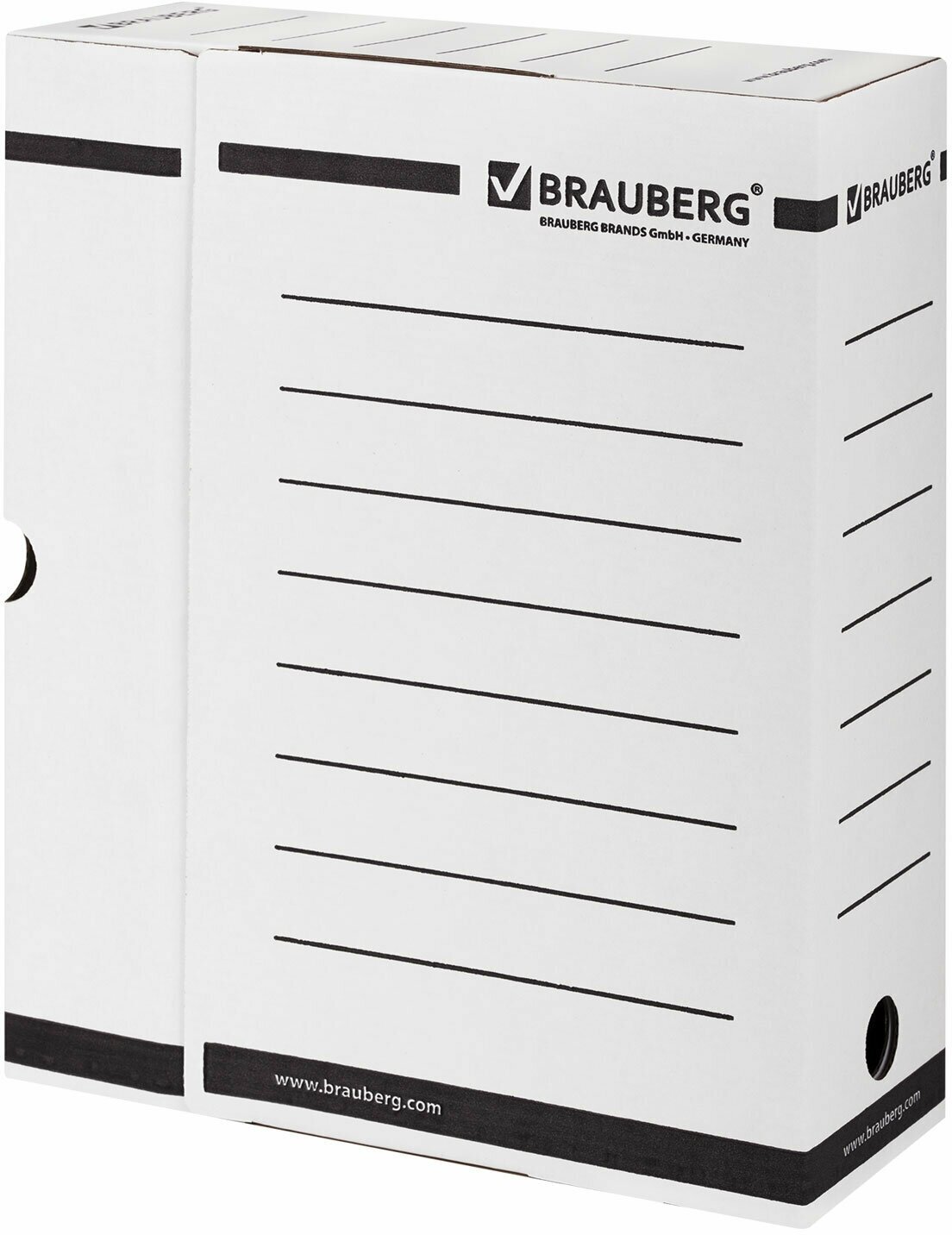 Купить Короб архивный с клапаном А4 (260х325 мм), 100 мм, до 900 листов, плотный, микрогофрокартон, белый, BRAUBERG, 124848